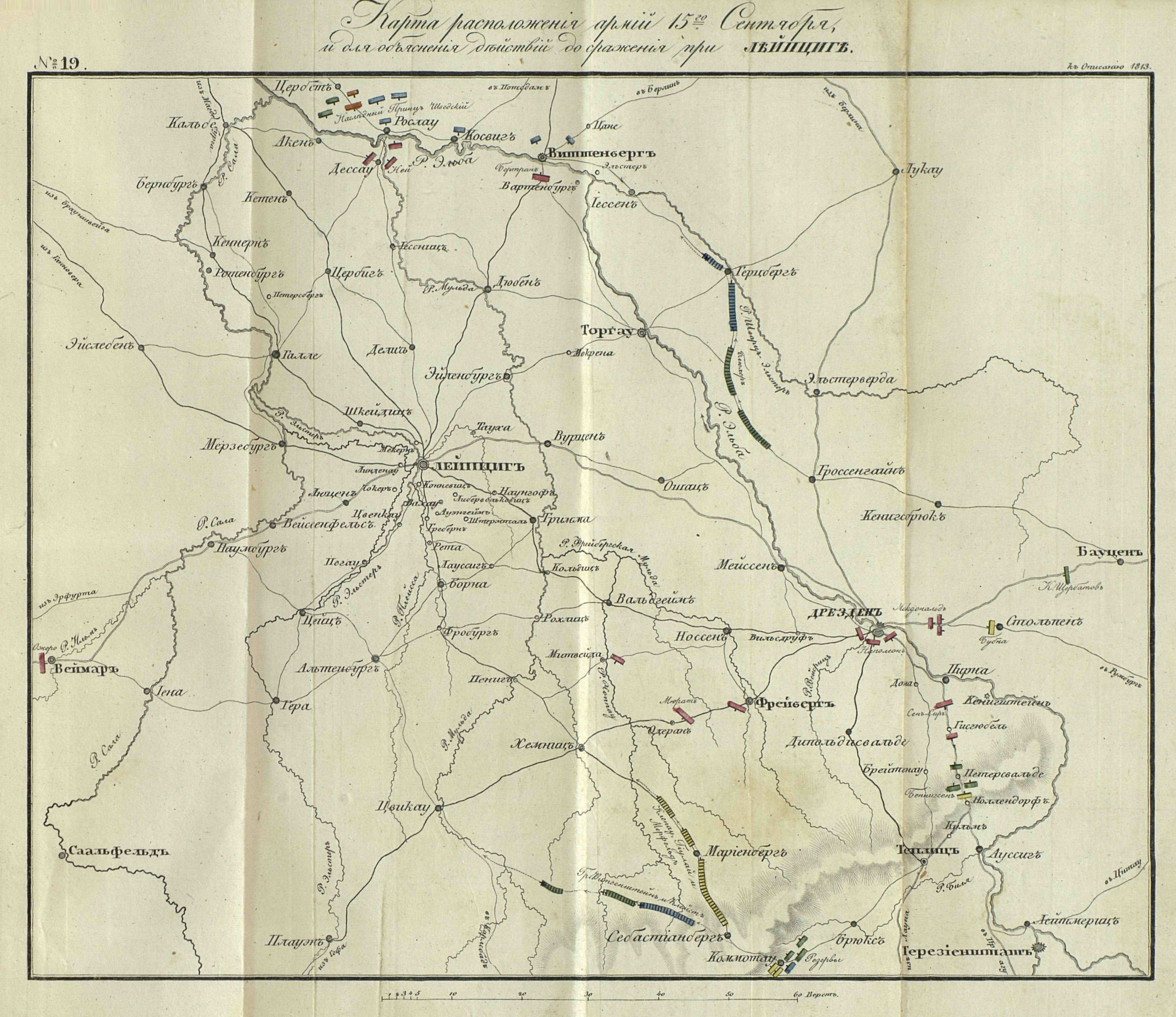Карта расположения армий 15 сентября и для объяснения действий до сражения при Лейпциге