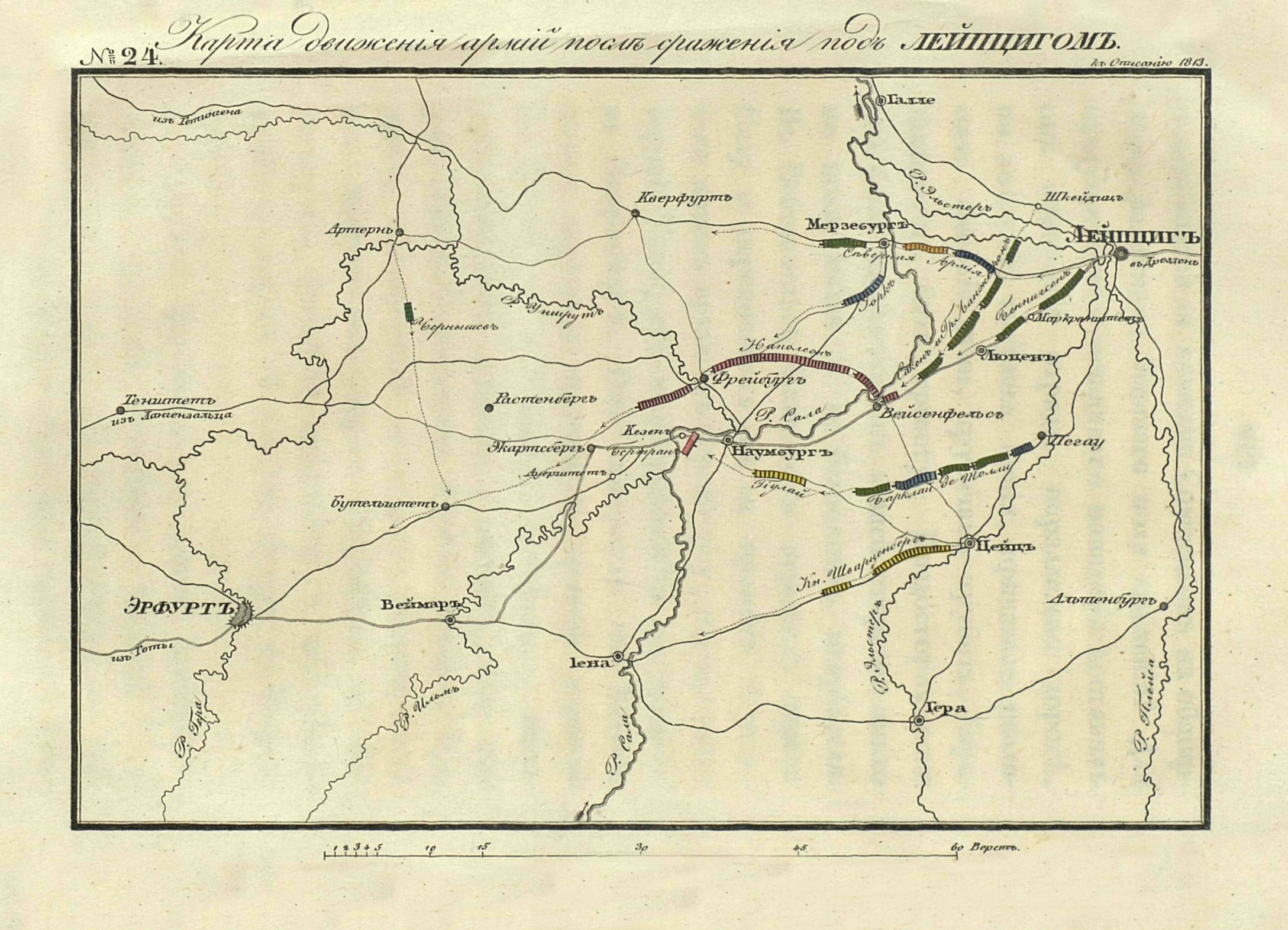 Карта расположения армий 15 сентября и для объяснения действий до сражения при Лейпциге