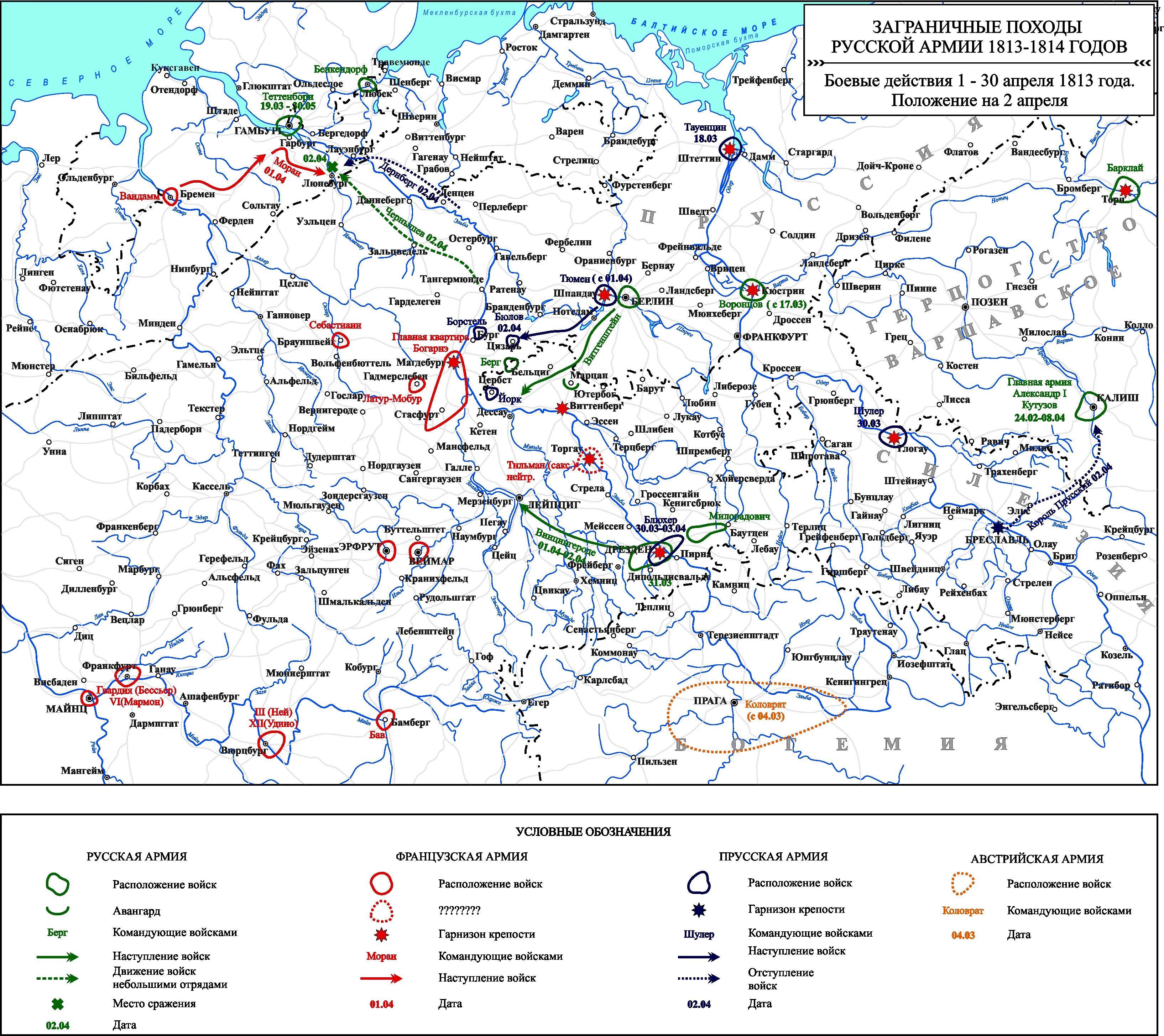 Заграничные походы Русской армии 1813-1814 гг. Положение на 2 апреля 1813 г.