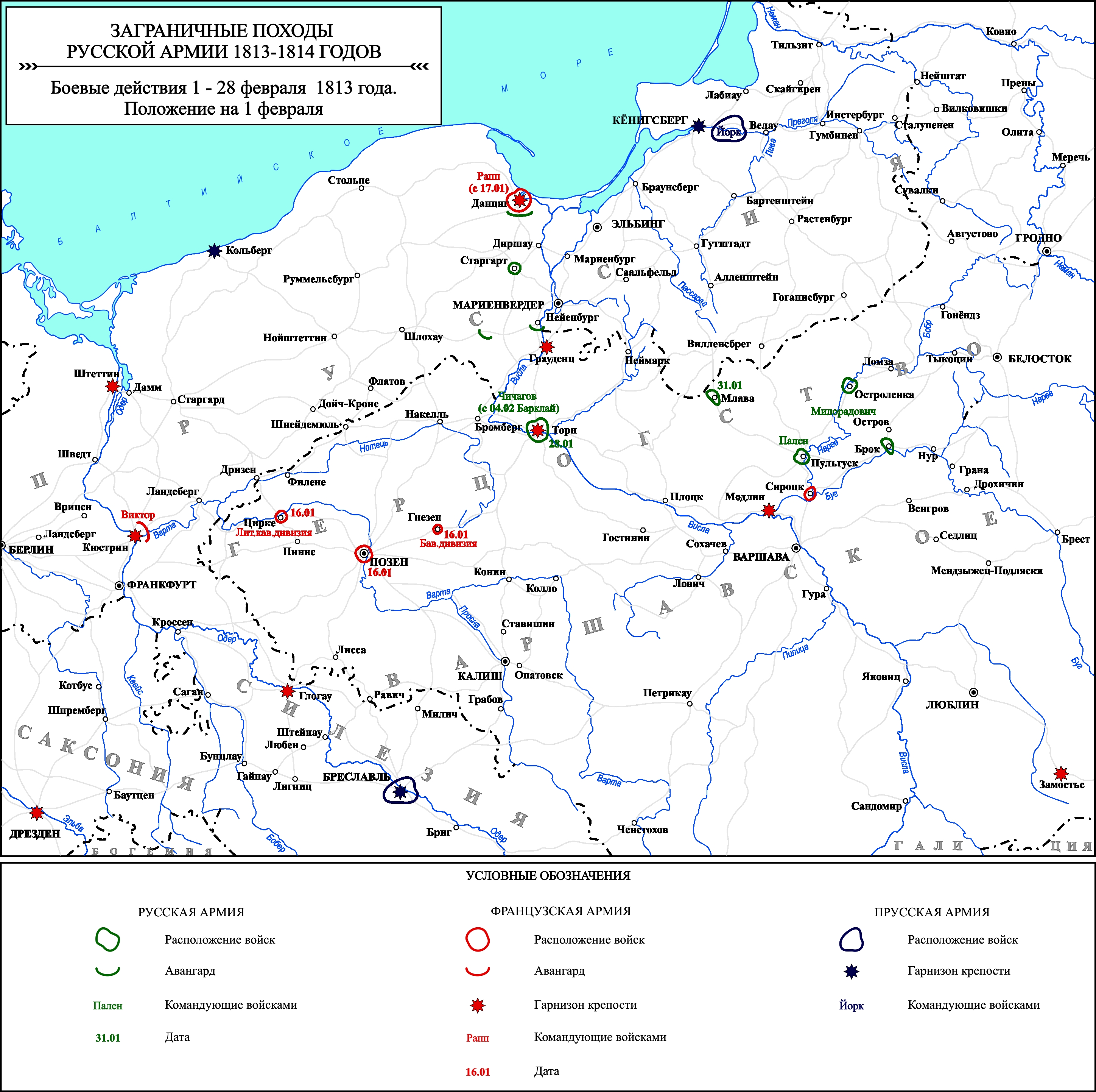 Заграничные походы Русской армии 1813-1814 гг. Положение на 1 февраля 1813 г.