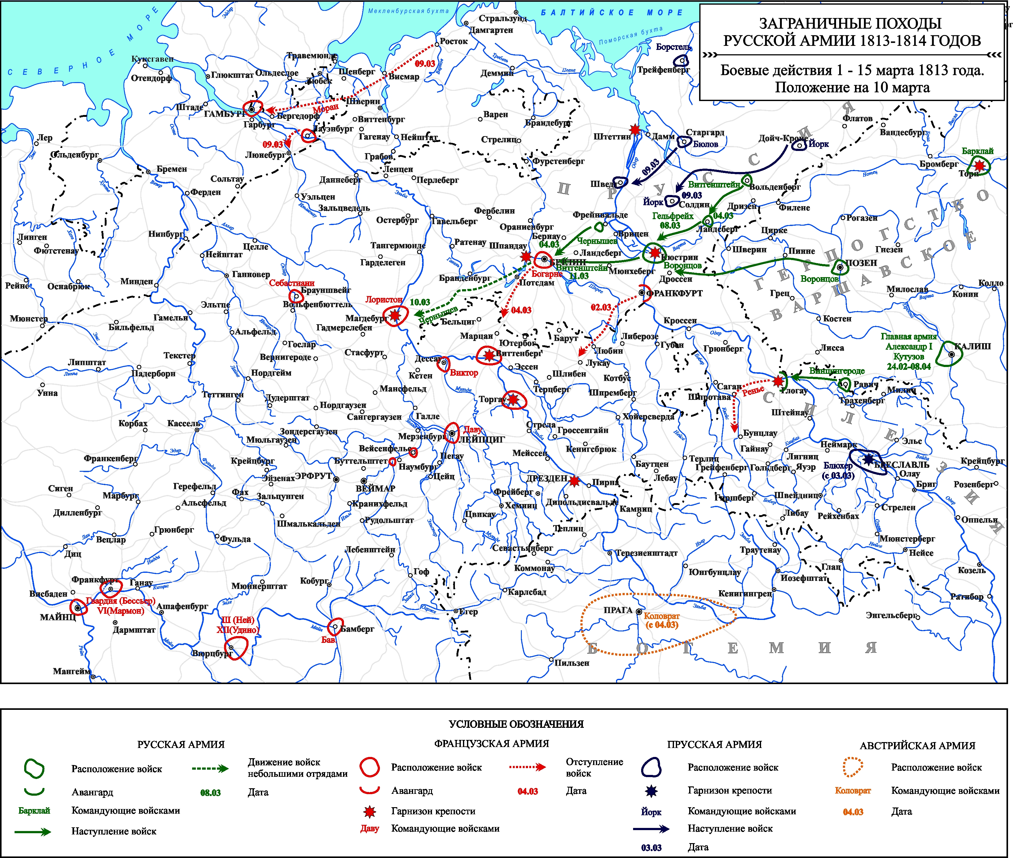 Заграничные походы Русской армии 1813-1814 гг. Положение на 10 марта 1813 г.