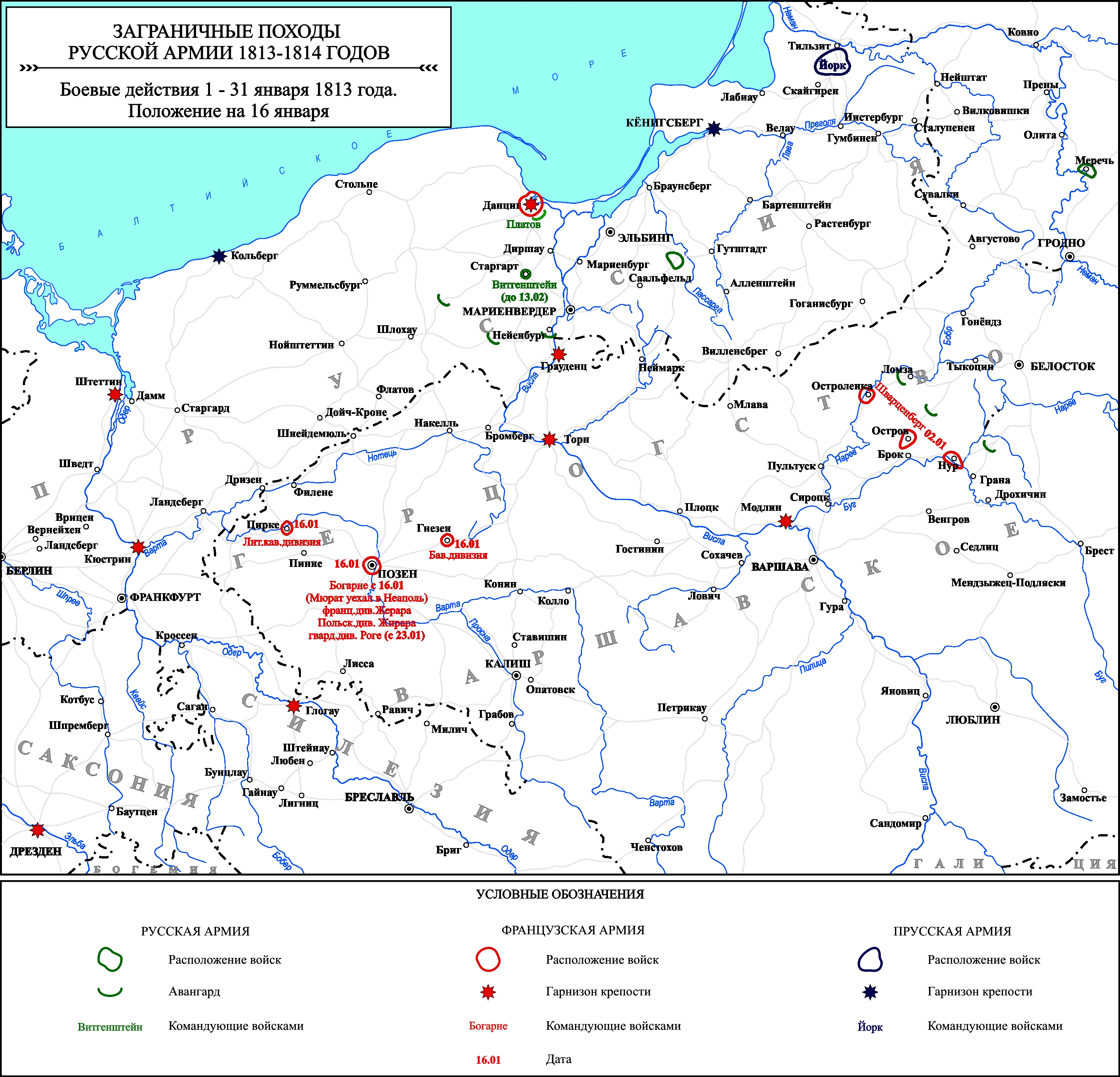 Заграничные походы Русской армии 1813-1814 гг. Положение на 16 января 1813 г.