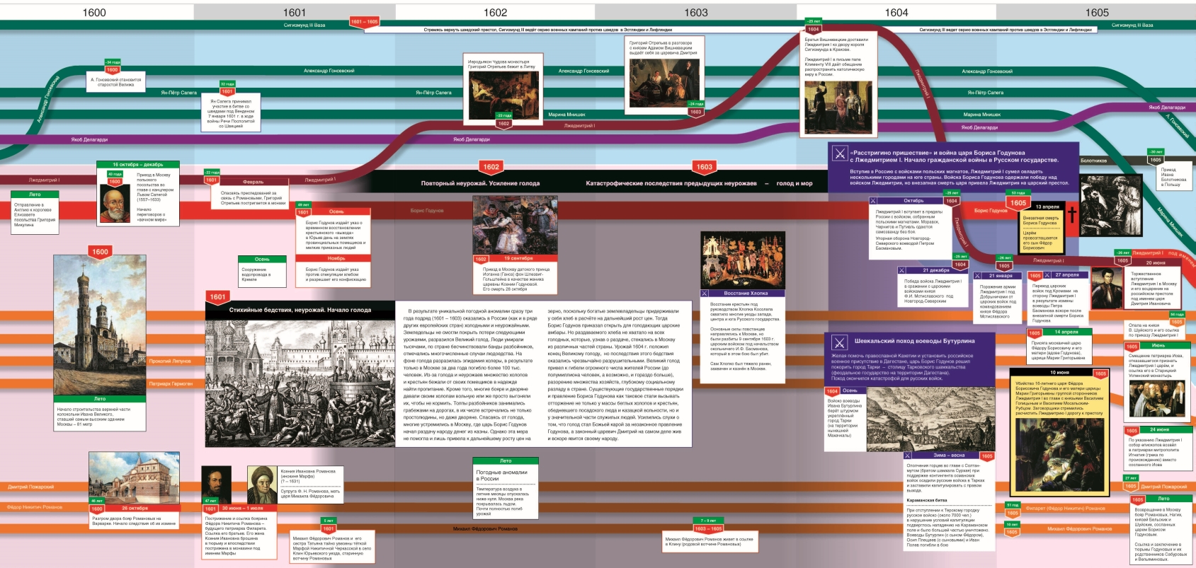 «Наглядная хронология» – новое иллюстрированное издание, представляющее исторические события и процессы на «ленте времени». Впервые читатель получает возможность ознакомиться с серией наглядных пособий по истории России. Настоящий выпуск посвящён Смутному времени – сложному периоду российской истории конца XVI – начала XVII вв., от пресечения династии Рюриковичей до воцарения династии Романовых. Исторические события с датами и пояснениями представлены здесь в хронологической последовательности. Они накладываются на «линии жизни» основных деятелей Смутного времени, представляющих три государства: Россию, Речь Посполитую и Швецию. Издание будет интересно школьникам и учителям в учебном процессе и при подготовке к ЕГЭ, студентам и преподавателям, а также всем любителям истории.