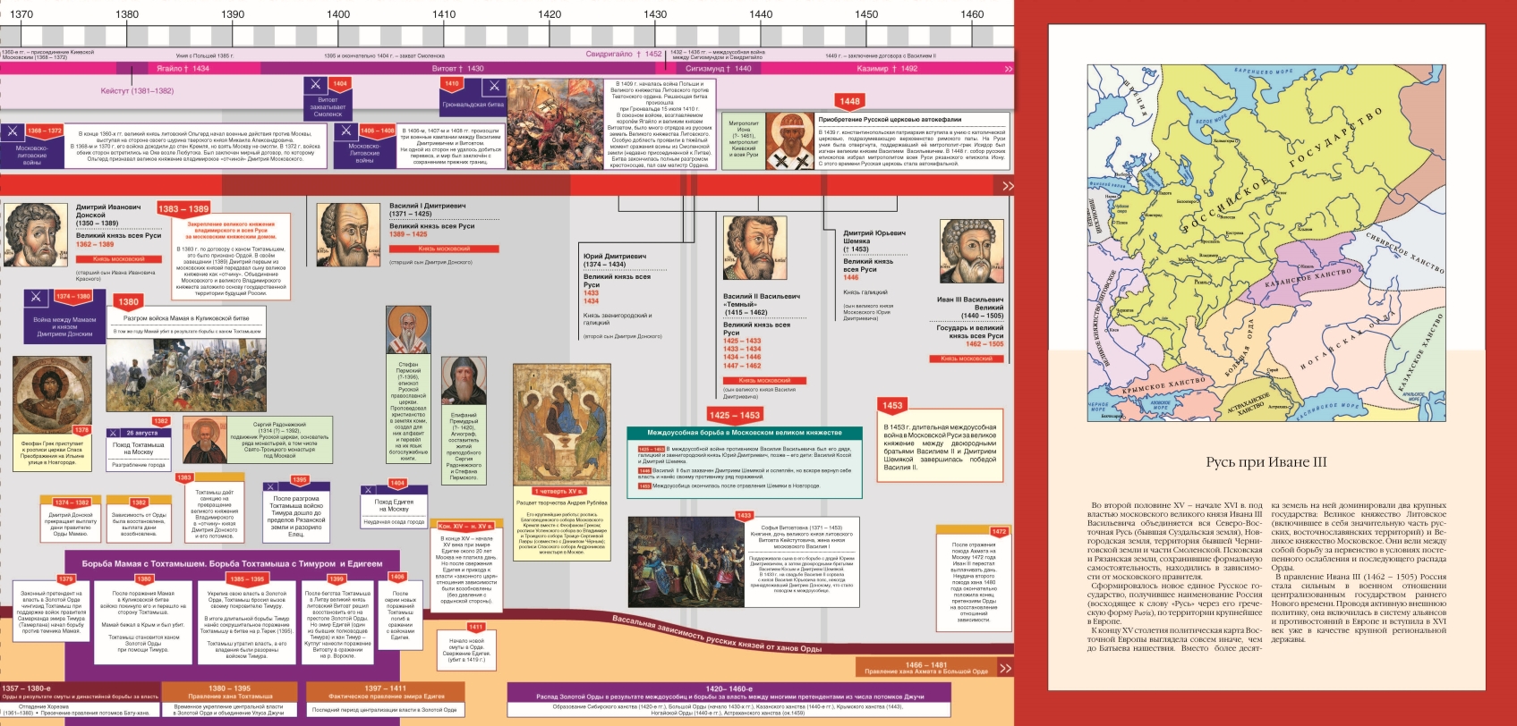 правлений главных русских князей. На отдельных «лентах времени» представлены история Золотой Орды, Великого