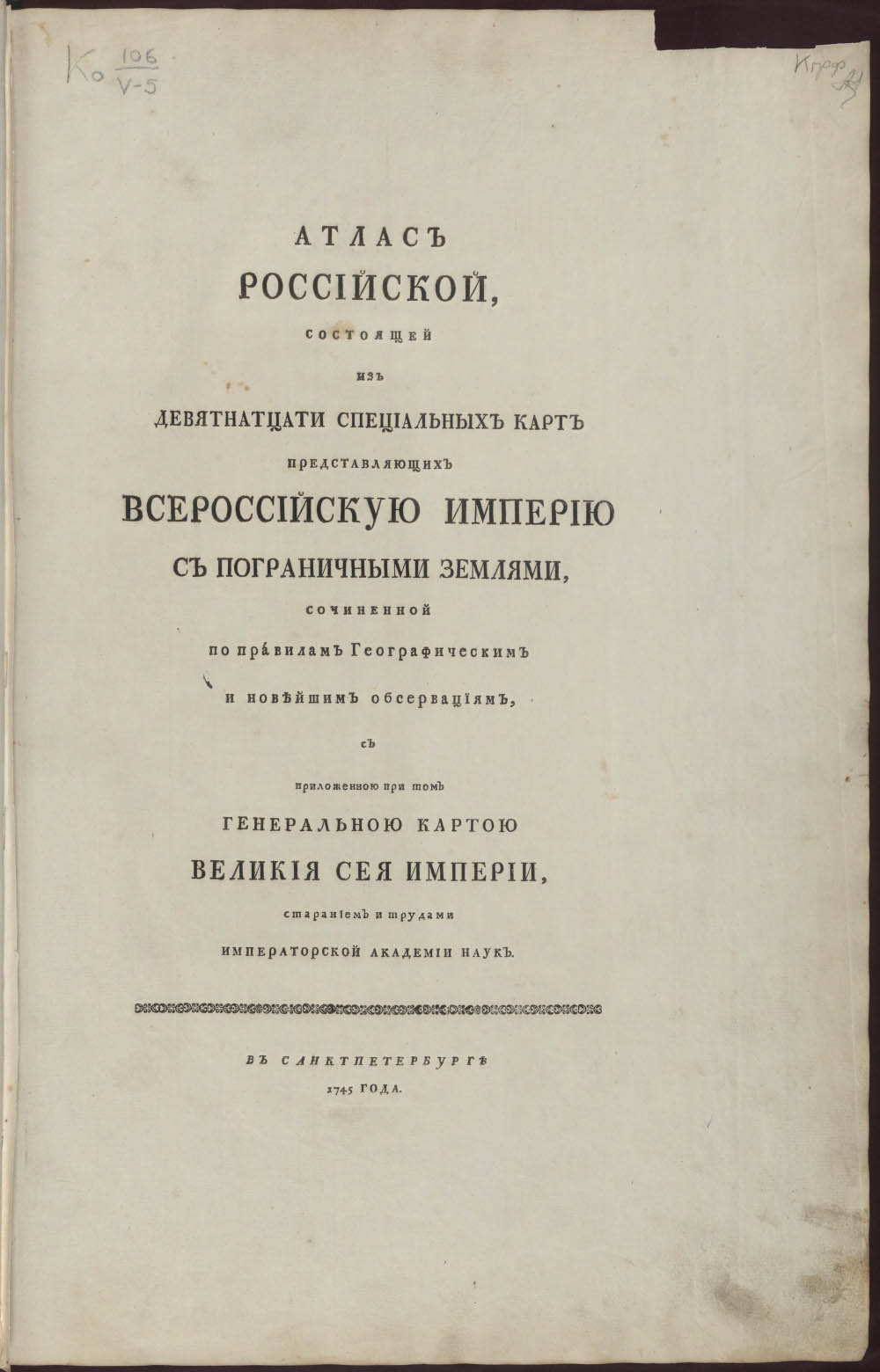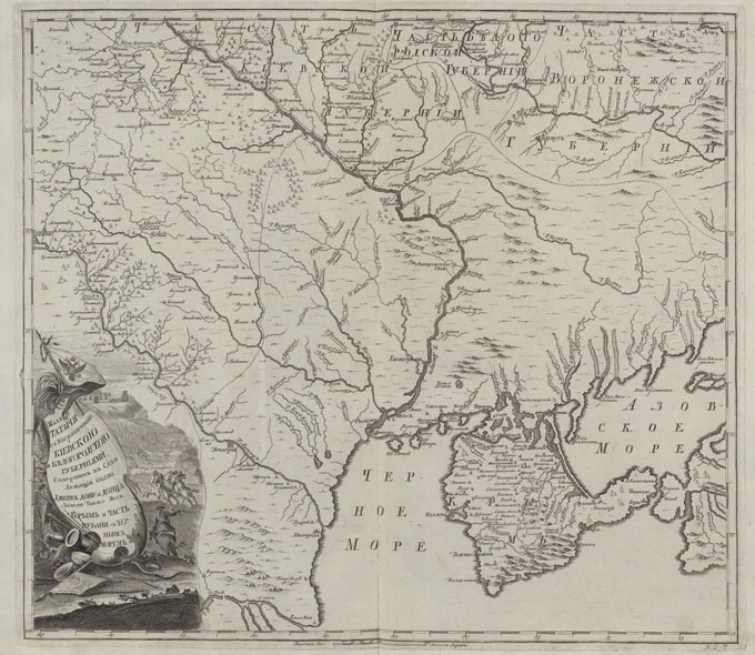 Карта Черного моря, Северного причерноморья и Крыма, входящая в состав «Атласа Росийского, состоящего из девятнадцати специальных карт, представляющих Всероссийскую империю с пограничными землями...», издательства Санкт-петербургской Академии наук 1745 г.