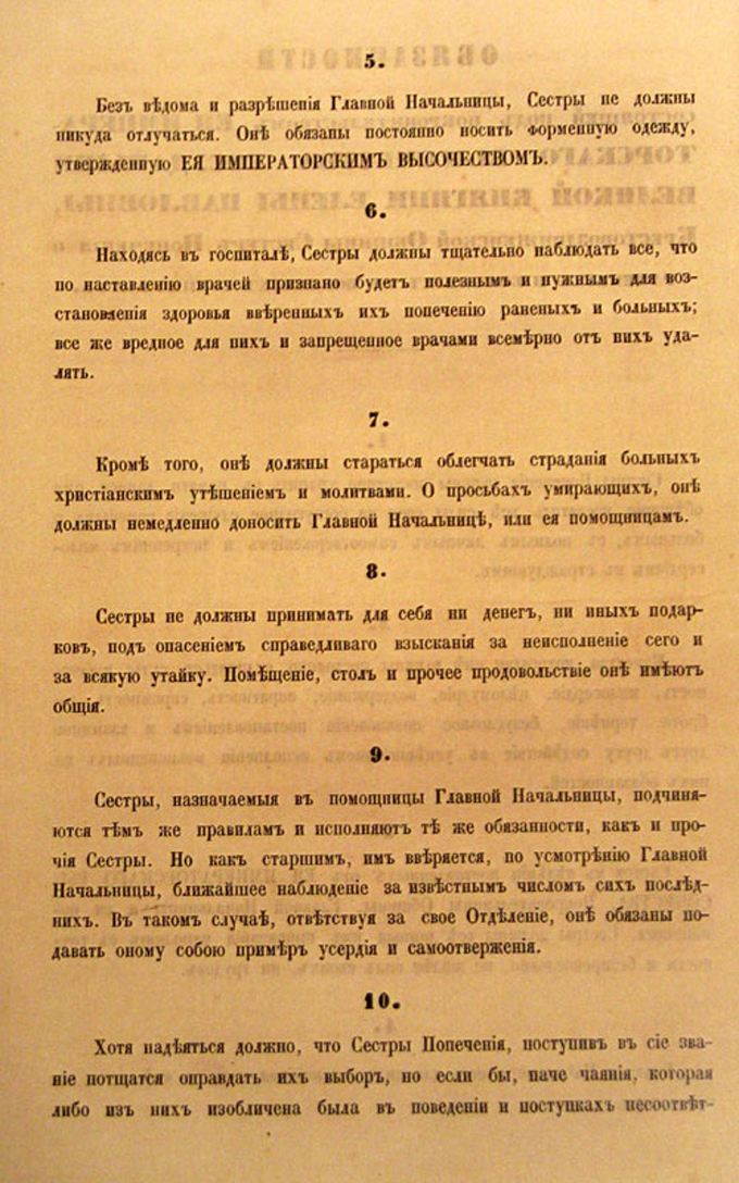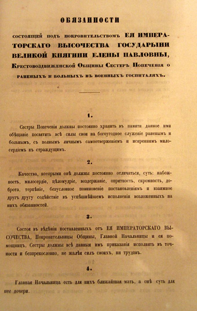 Служебный документ первой русской общины сестер милосердия, созданной в период Крымской войны - с описанием обязанностей и требований к ее членам.