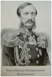 Васильчиков Виктор Илларионович (1820—5.10.1878), князь, государственный деятель. В 1842—1844 участвовал в разных экспедициях против горцев на Кавказе, в 1849 — в Венгерской кампании. С конца 1854 был начальником штаба Севастопольского гарнизона и одним из последних оставил Севастополь. (Брокгауз и Ефрон)