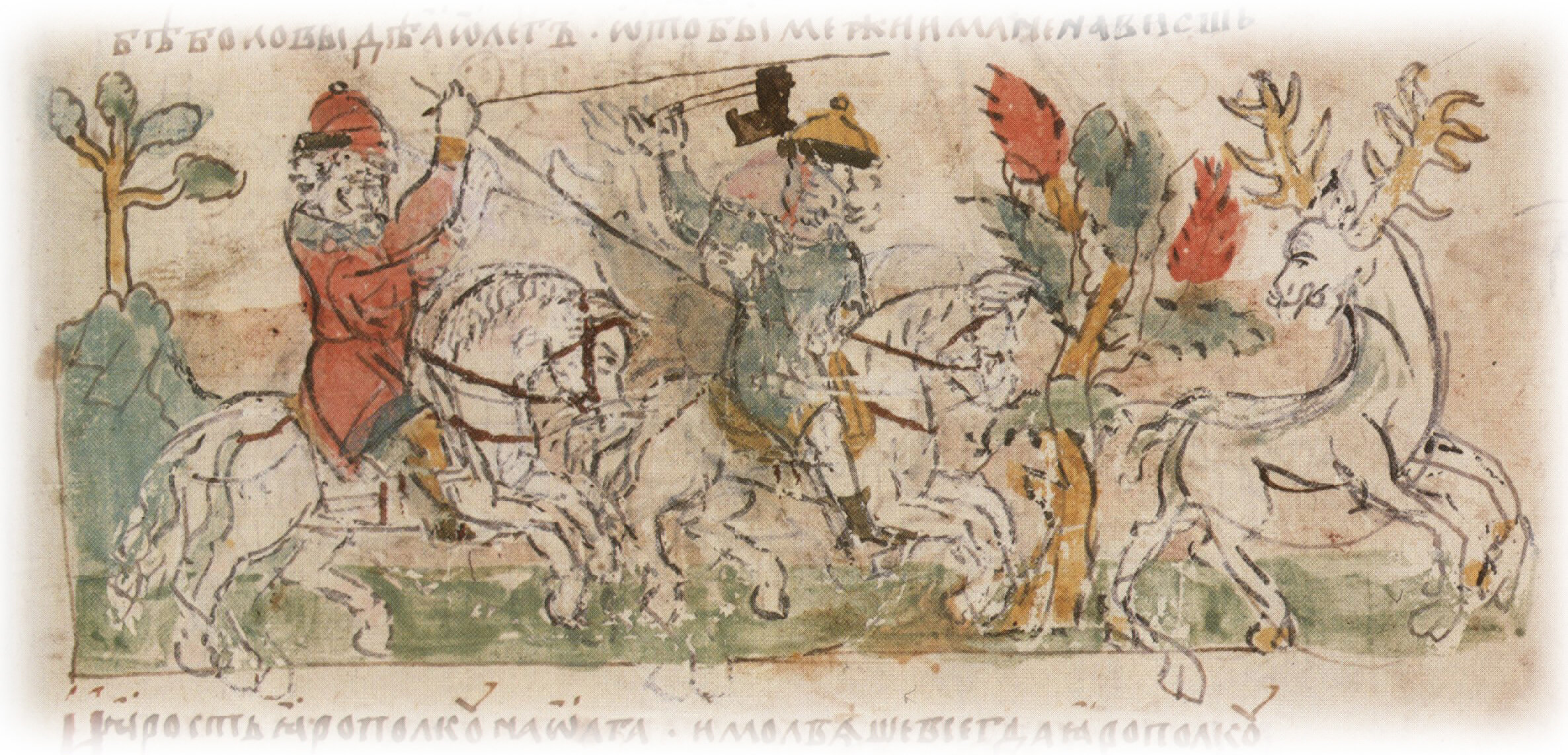 Начались страшные поиски: воины разгребали горы трупов во рву с утра до самого полдня. Наконец, тело Олега было найдено под грудой тел людей и лошадей. Его вынесли и положили на ковре.