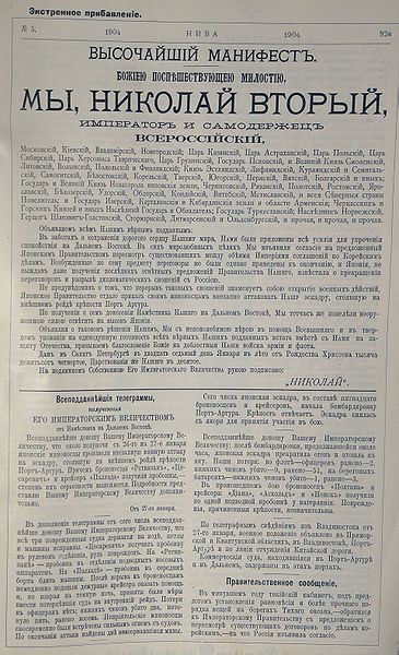 Манифест о начале русско-японской войны. Нападение японцев было вероломным, но не неожиданным. Царское правительство также стремилось к переделу сфер влияния на Дальнем Востоке, однако недооценила быстроту действий японцев.