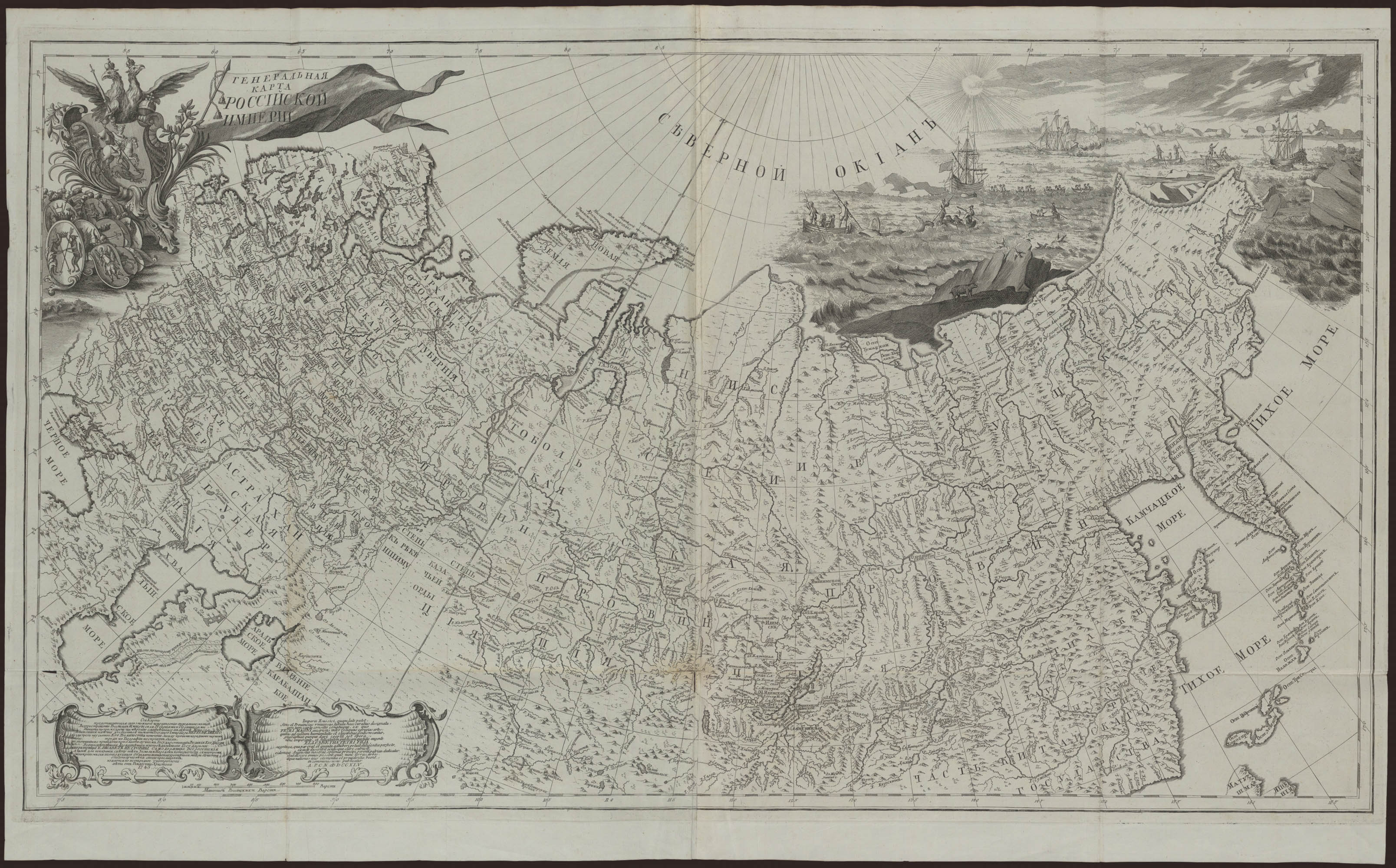 В 1745 году Академия Наук подготовила первый географический атлас империи с использованием последних достижений в области картографии. Несколько экспедиий тщательно измеряли и проводили съёмку границ России. На страницах этого атласа впервые в истори появилось точное изображение Курильских островов, очень близкое к действительности. Курилы закреплены за русским государством.