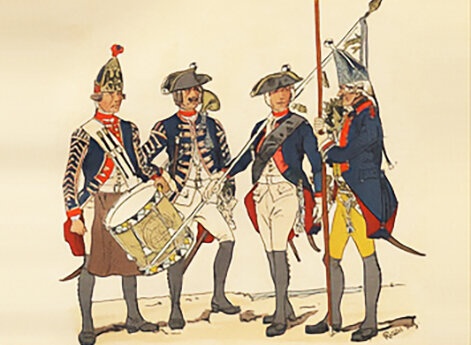 Действия в Богемии, Саксонии и СилезииСтратегия Фридриха II в кампаниях 1757 г. состоит в том, чтобы выбить из войны Австрию до подхода на театр военных действий войск ее союзников – Франции и России. В апреле Фридрих II атакует австрийцев в Богемии и 6 мая наносит им под Прагой поражение. Но 18 мая под Колином (Богемия) прусская армия терпит поражение от войск австрийского фельдмаршала Дауна 1, что вынуждает Фридриха снять осаду Праги и отступить. Осенью одновременное наступление французов в направлении Саксонии и австрийцев в Силезии создает для Фридриха серьезную угрозу, но ему удается разбить их по очереди в двух генеральных сражениях: 5 ноября Фридрих II громит французскую армию маршала Субиза при Росбахе (Саксония) 2, а 5 декабря наносит австрийцам тяжелое поражение при Лейтене (Силезия) 3.