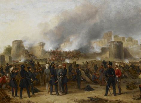 Например, для ОИК гораздо большую опасность представляло государство сикхов на северо-западе, где махараджа Ранджит Сингх создал отличнейшую Пенджабскую армию с помощью «оставшихся без работы» после окончания Наполеоновских войн французских военных: Жана-Батиста Вентуры, Жана-Франсуа Аллара и Клода-Огюста Корта (все трое участвовали при Ватерлоо, причем первый был полковником пехотного полка, второй – гусарским офицером, а третий служил в артиллерии). Они соответственно своим специализациям взялись за реформирование пехоты, конницы и артиллерии сикхов и натренировали их фактически как сипаев ОИК и даже лучше. В записках Жана-Мари Лафона о сикхской армии приводится такой пример: офицеры сикхов для получения звания от капитана и выше сдавали экзамены совету, составленному из европейцев и боевых офицеров. Сдавший получал звание. Несдавшего казнили, ибо затраченные на его обучение деньги брались из казны и получалось, что они были потрачены зря. Впрочем, возможно, это байка, поскольку по крайней мере в гражданском праве в Империи сикхов смертная казнь была официально отменена, чему есть масса свидетельств. Потерпев множество поражений от сикхов во время англо-сикских войн, британцы не стали распускать их полки, а позвали к себе на службу. Но об этом позже.