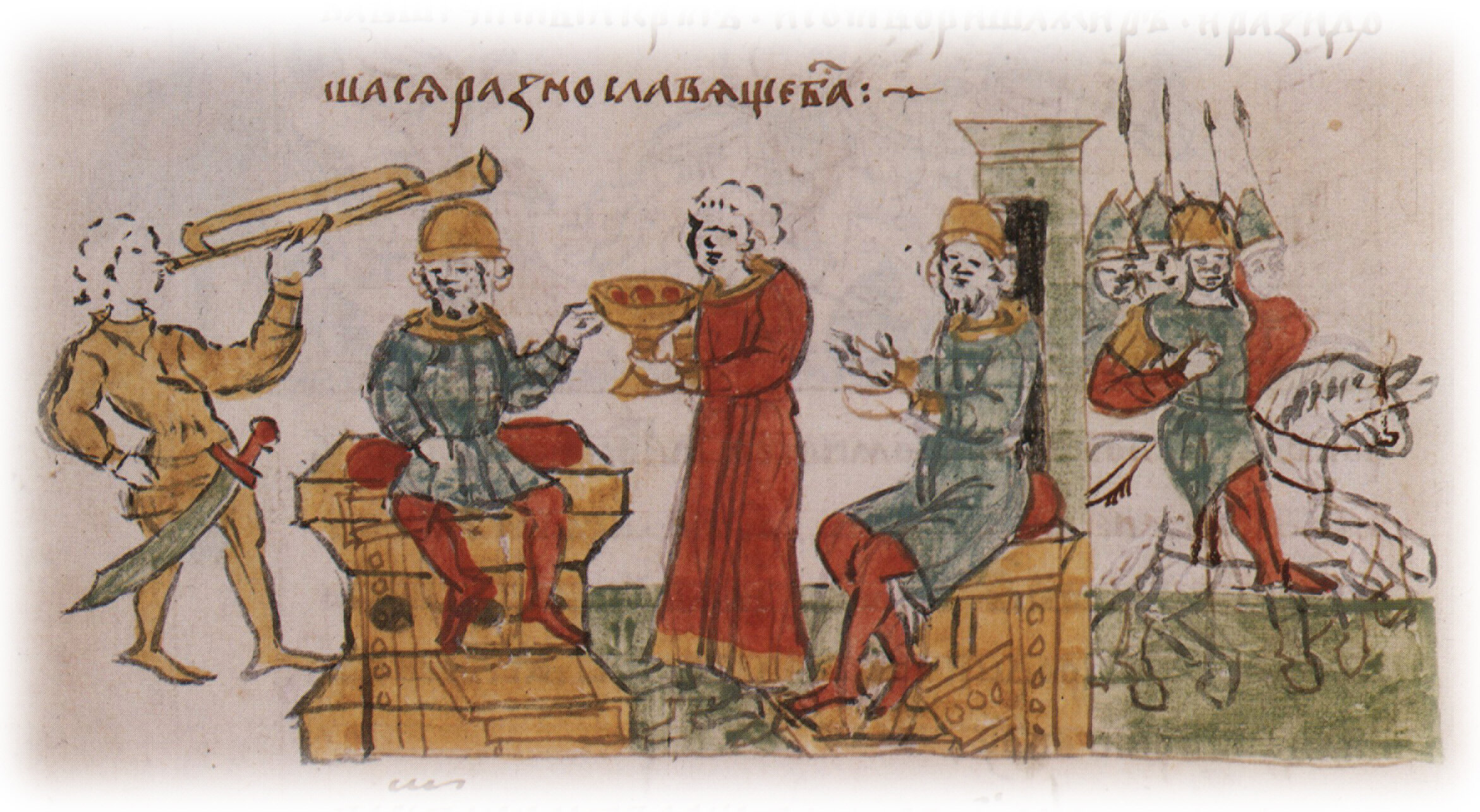 Варка киселя из болтушки и сыты в Белгороде в присутствии печенегов, пришедших с корчагами; испробование печенежскими князьями приготовленных кушаний, наличие которых в осажденном городе привело врагов в изумление и заставило снять осаду города.