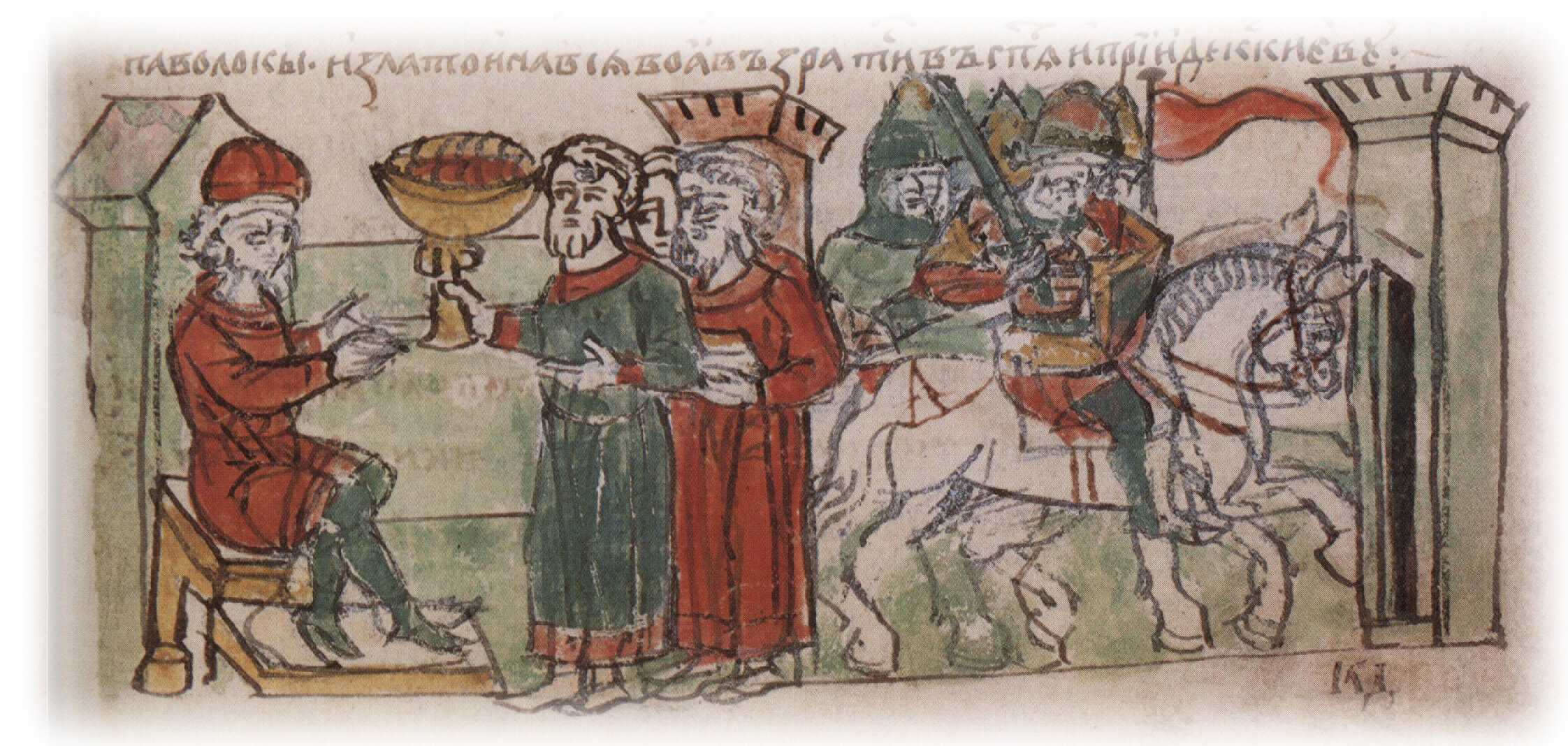 Варка киселя из болтушки и сыты в Белгороде в присутствии печенегов, пришедших с корчагами; испробование печенежскими князьями приготовленных кушаний, наличие которых в осажденном городе привело врагов в изумление и заставило снять осаду города.