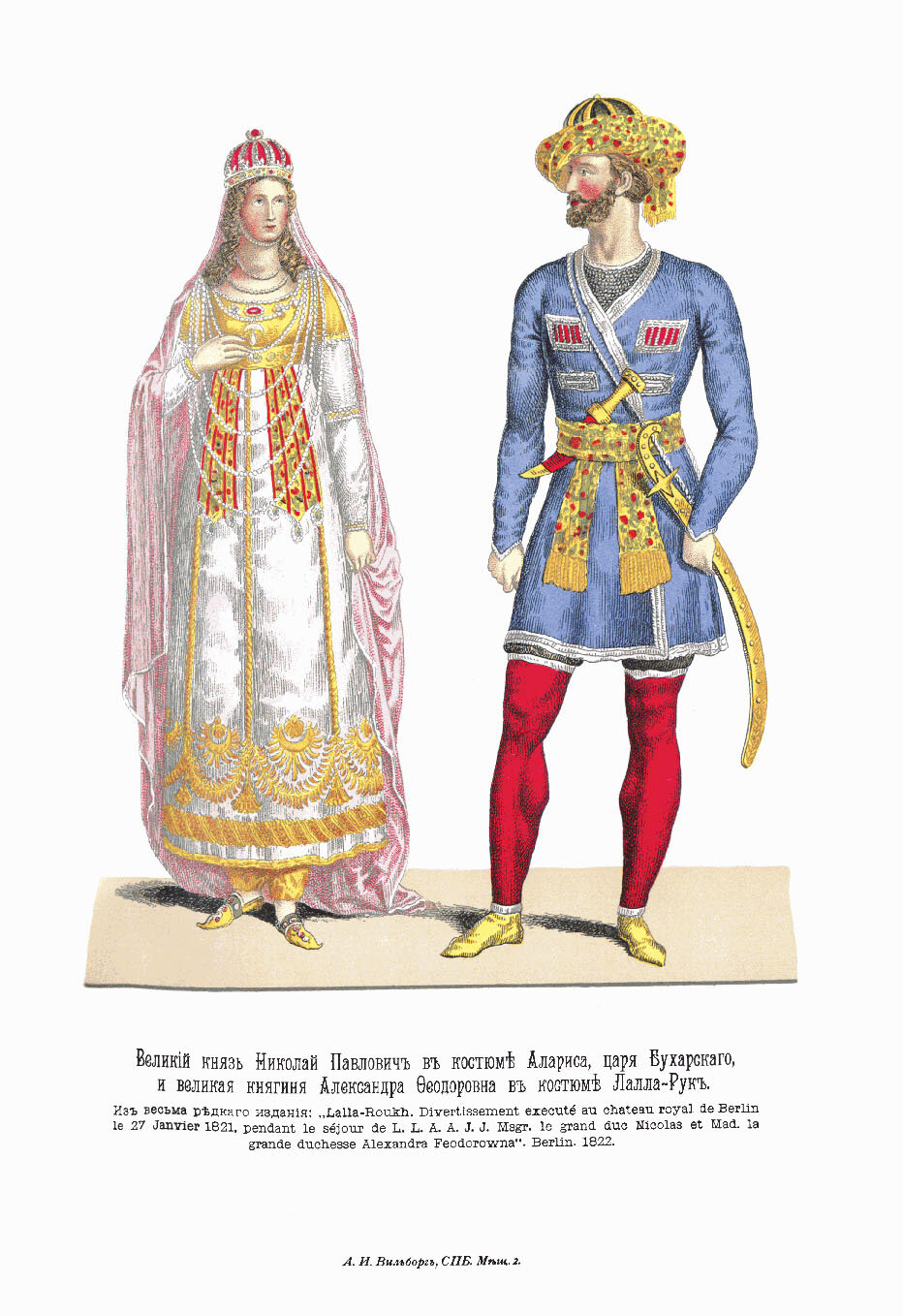 Великий князь Николай Павлович в костюме Алариса, царя Бухарского, и Великая княгиня Александра Федоровна в костюме Лалла Рук