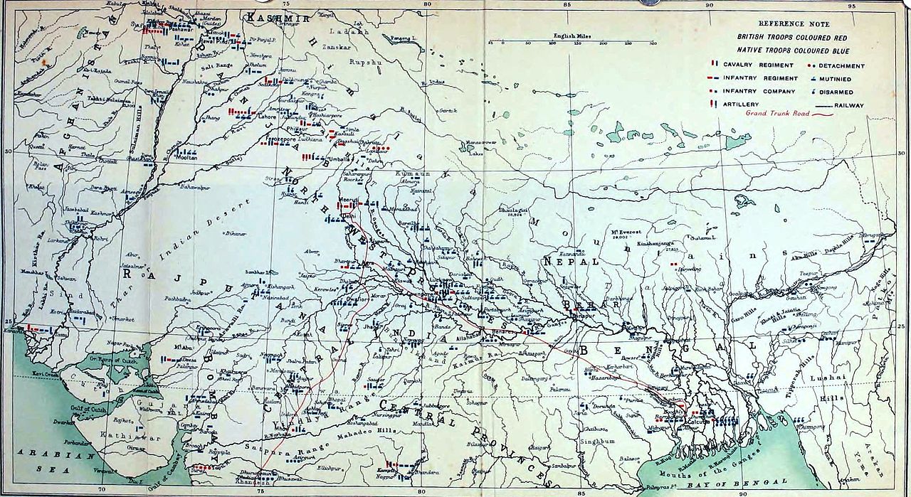 Карта расквартированных частей на севере Индии
