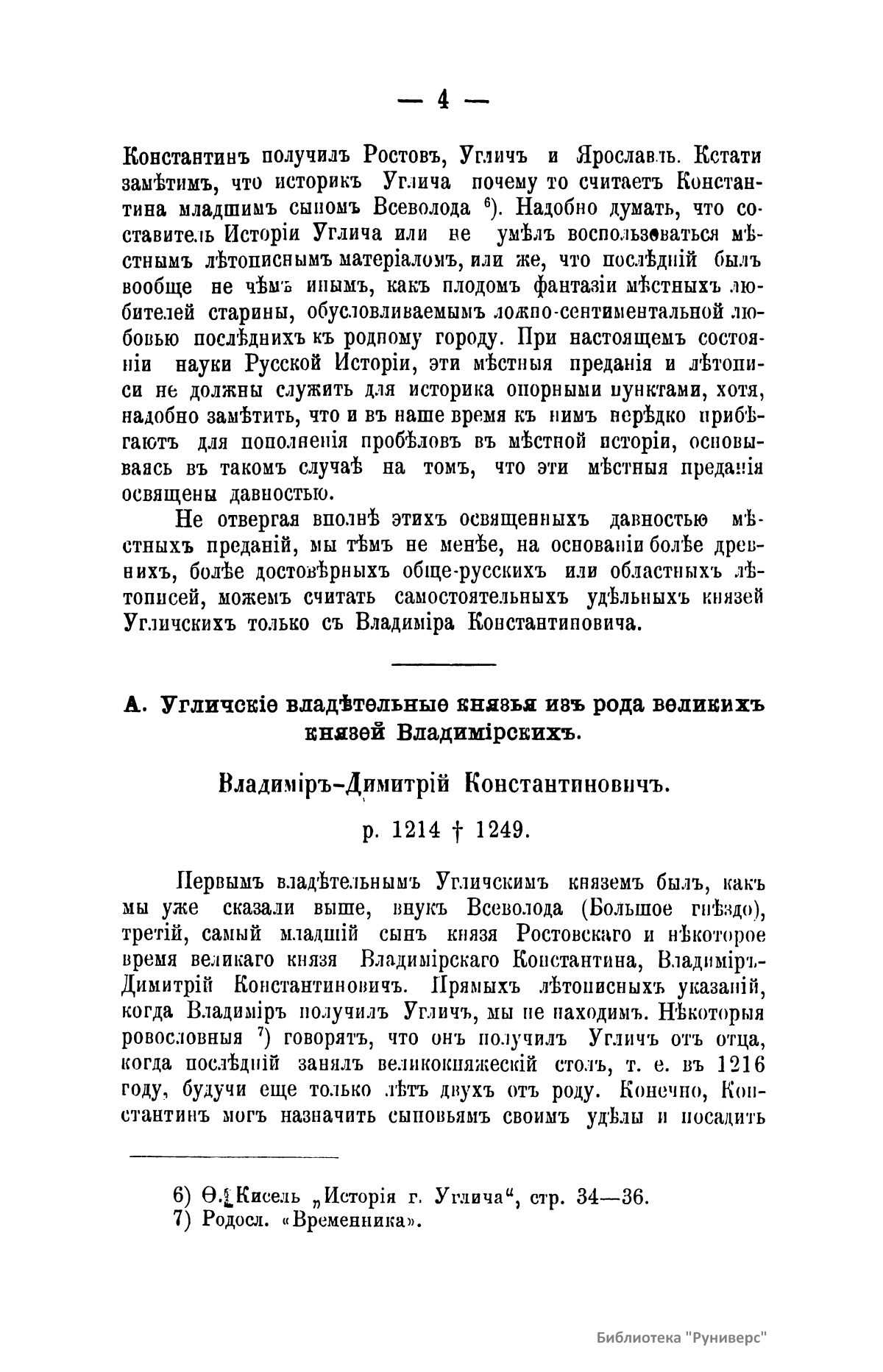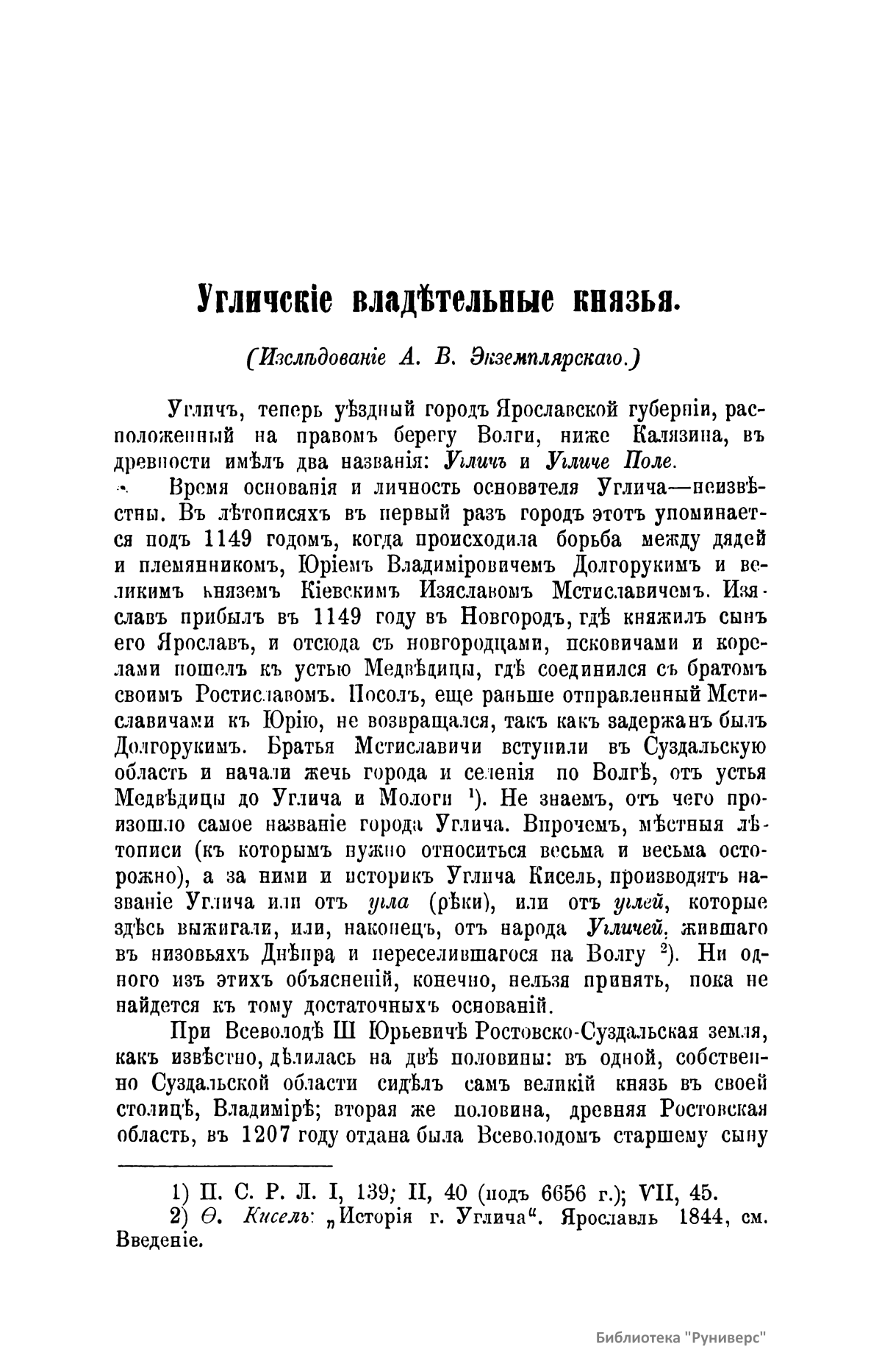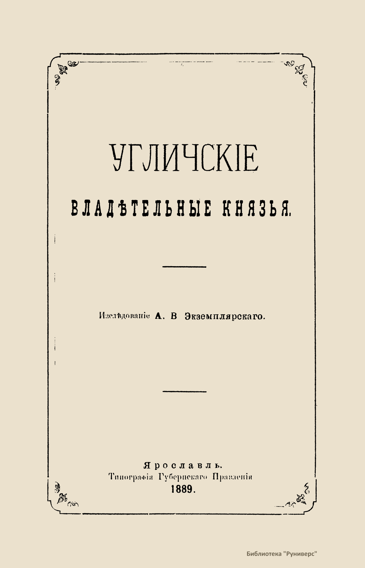 Экземплярский, историк и специалист в древней генеалогии, продолжает составление списков владетельных князей разных уделов Руси.