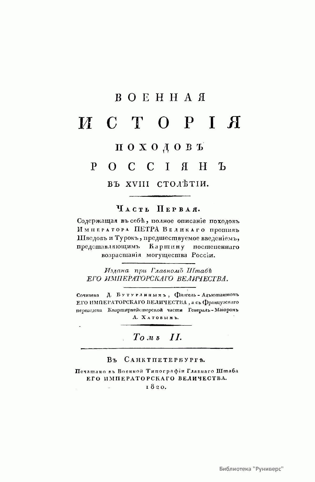 Военная исторiя походовъ россiянъ въ XVIII столѣтiи. Часть первая. Томъ II