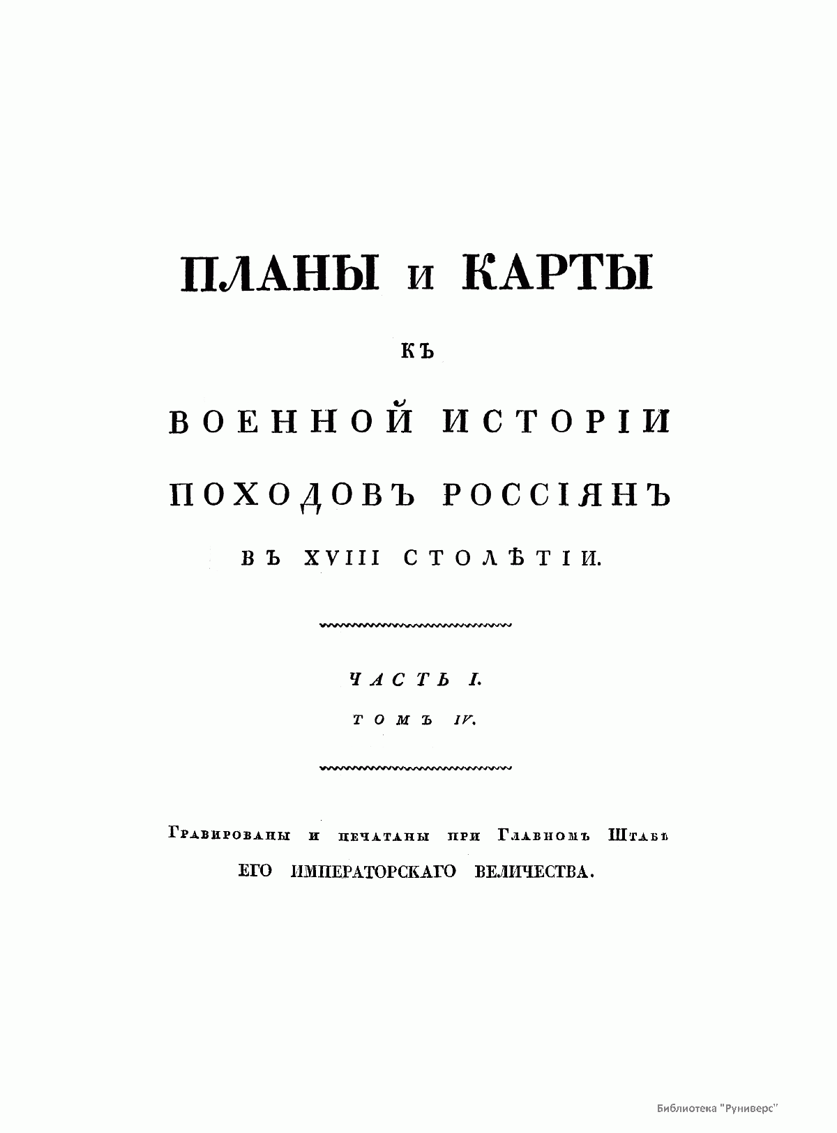 Планы и карты к военной истории походов россиян в XVIII столетии. Часть I. Том IV