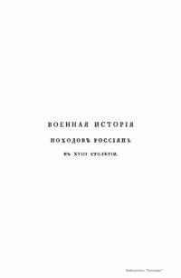 Военная история походов россиян в XVIII столетии. Часть вторая. Том IV. 1-я половина