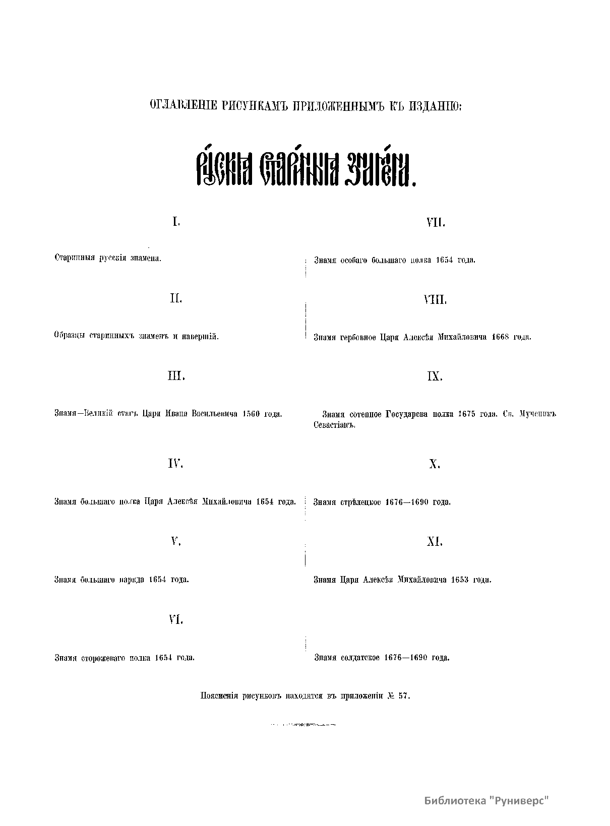 Авторы настоящего издания считают, что время охранения памятников России настало со вступления на престол Императора Николая I. Повелевая хранить памятники и остатки русских древностей, он приказал все, что заслуживает внимание и составляет материал истории, отчетливо срисовать, описать и издать. Император повелел учредить в Москве Комитет издания древностей Российского государства. Первый отдел огромного и великолепного издания «Древности Российского государства» состоит из 500 большого формата рисунков, распределенных по своему содержанию на шесть частей с соответствующим описанием. Первая часть «Древностей» заключает в себе священные памятники: а) образа и кресты, замечательные в историческом и художественном отношении, б) храмовую утварь разных времен, в) облачения духовного сана. Вторая часть содержит древний царский чин, или священное облачение русских великих князей и царей при поставлении на царство. В третьей части представлена древняя броня и оружие. Четвертую часть составляют древние великокняжеские, царские, боярские и местные народные одежды в изображениях и портретах. В пятой части можно увидеть древнюю царскую столовую утварь. Шестая часть состоит из памятников древнего русского зодчества.