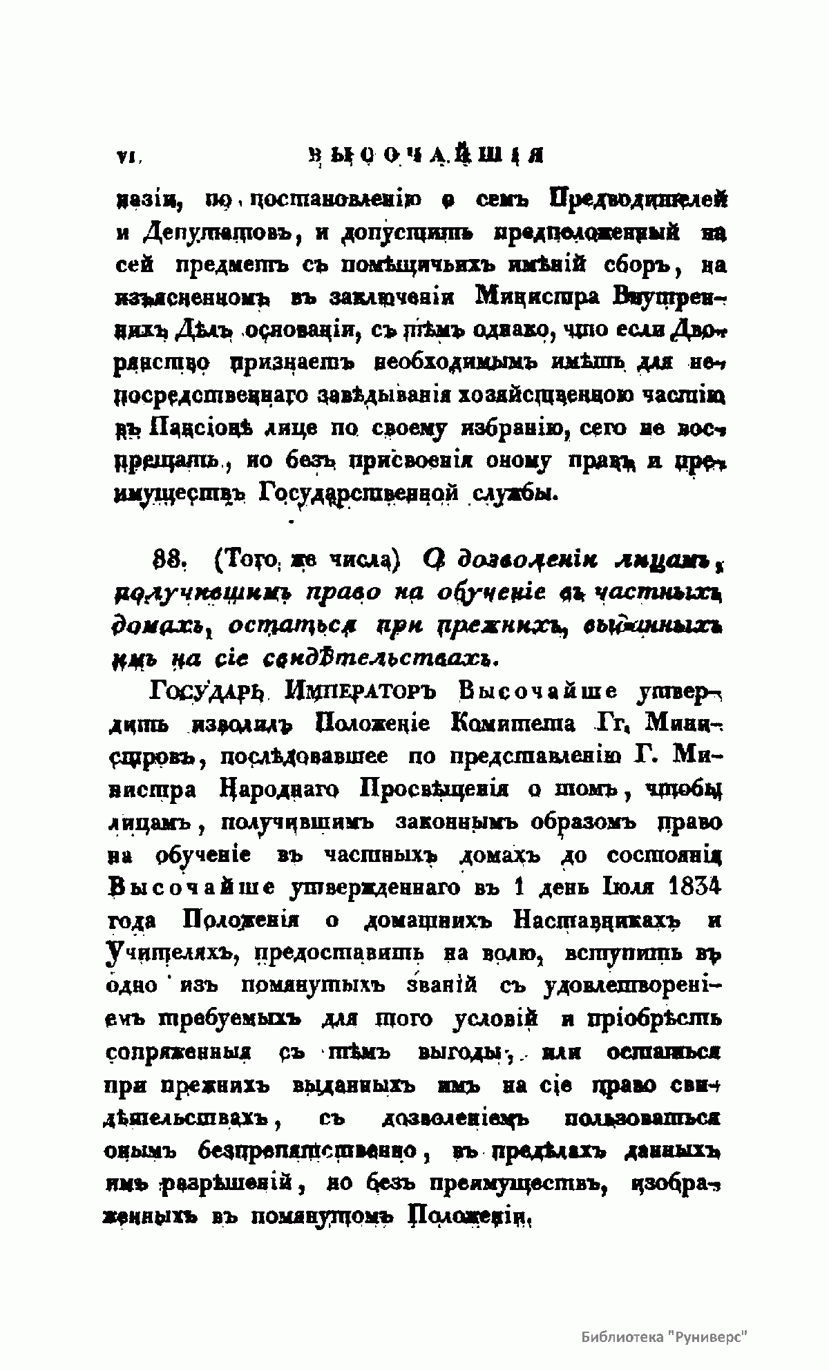 Журнал Министерства народного просвещения выходил с 1834-го по 1917 год. Официальный периодический журнал об успехах просвещения в России. Издатели журнала уверены в том, что «если для каждого человека необходим выход из грубой тьмы невежества и беспрерывное дальнейшее движение к свету, то для народов необходимо попечительное участие правительства в образовании. Только правительство имеет все средства знать и высоту успехов всемирного образования, и настоящие нужды Отечества».