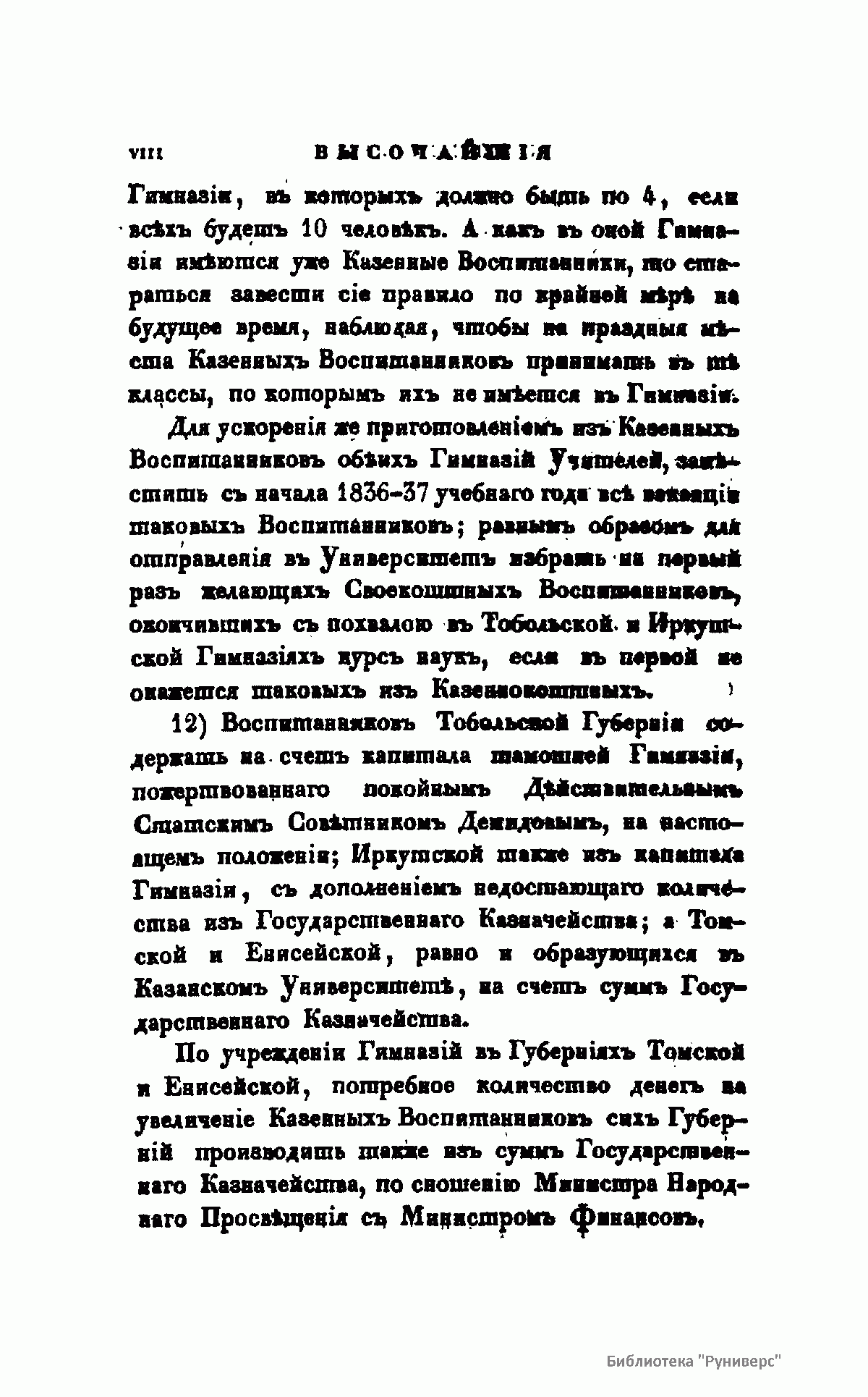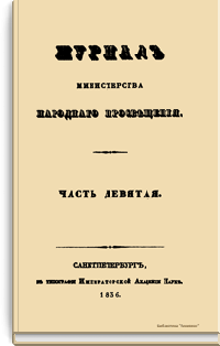 Журнал Министерства народного просвещения выходил с 1834-го по 1917 год. Официальный периодический журнал об успехах просвещения в России. Издатели журнала уверены в том, что «если для каждого человека необходим выход из грубой тьмы невежества и беспрерывное дальнейшее движение к свету, то для народов необходимо попечительное участие правительства в образовании. Только правительство имеет все средства знать и высоту успехов всемирного образования, и настоящие нужды Отечества».
