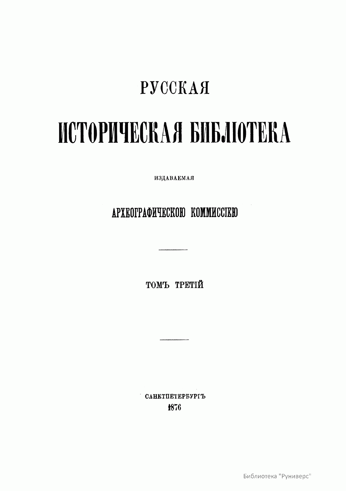 Русская историческая библiотека, издаваемая Археографическою комиссiею. Томъ третiй