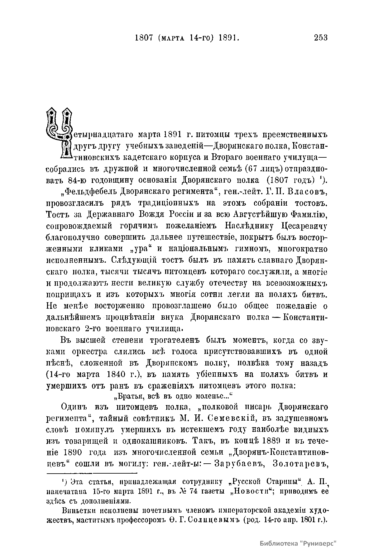 Дворянскiй полкъ, 84-я годовщина его учрежденiя