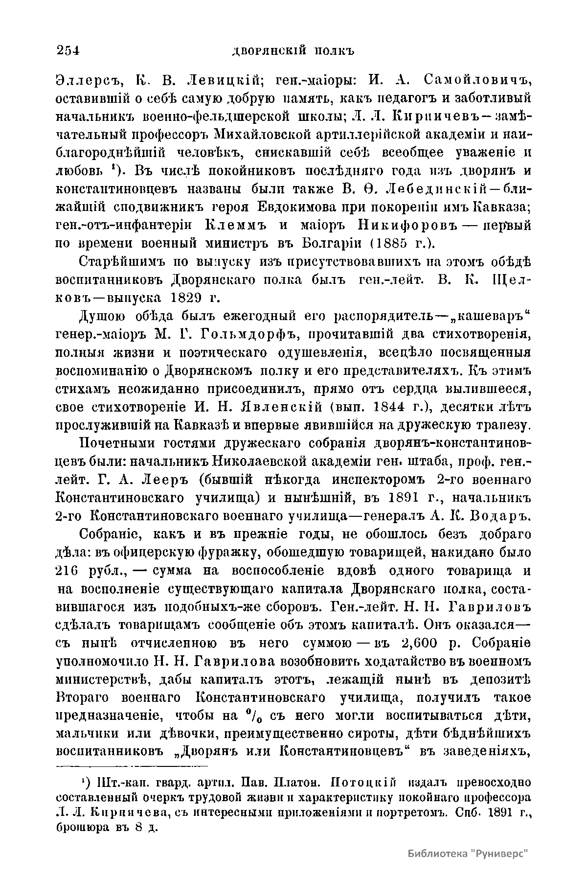 В 4-й книге в 70-м томе «Русской старины» за 1891 г. содержится повествование о торжествах посвященных празднованию 84-й годовщины Дворянского полка - военно-учебного заведения, существовавшего с 1807 по 1855 г. В качестве приложения приведен рассказ выпускнике Дворянского полка поручике А.А. Неелове, геройски погибшем в сражении при Альме в 1854 году.