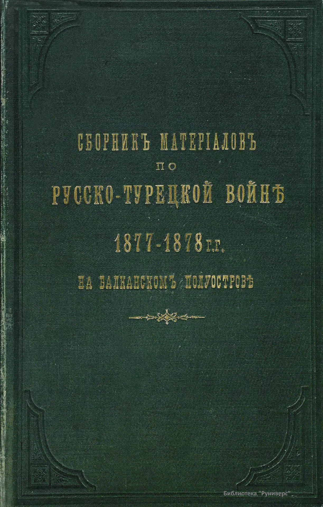 Военно-историческая комиссия Генерального штаба представляет сборник материалов по русско-турецкой войне 1877 – 1878 гг. на Балканском полуострове в 97 выпусках. Издание формирует полное представление о военных действиях и участниках этой войны. Русско-турецкая война 1877 – 1878 гг. была вызвана нежеланием Турции принять меры к улучшению положения подвластных ей христианских княжеств, обусловленному парижским трактатом 1856 г, и стремлением России укрепить свое влияние на Балканах. Способствовала освобождению народов Балканского полуострова от османского владычества. Россия объявила войну Турции 12 апреля 1877 г. Основные события: 1877 – сражение на Шипке, осада и взятие русскими войсками Плевны и Карса; 1878 – зимний переход русской армии через Балканский хребет, победы у Шипки – Шейново, Филиппополя, взятие Адрианополя. Завершилась Сан-Стефанским миром 1878 г., который обеспечил независимость балканским народам и территориальные приобретения России. Но Берлинский трактат ограничил независимость Болгарии и влияние России на Балканах.