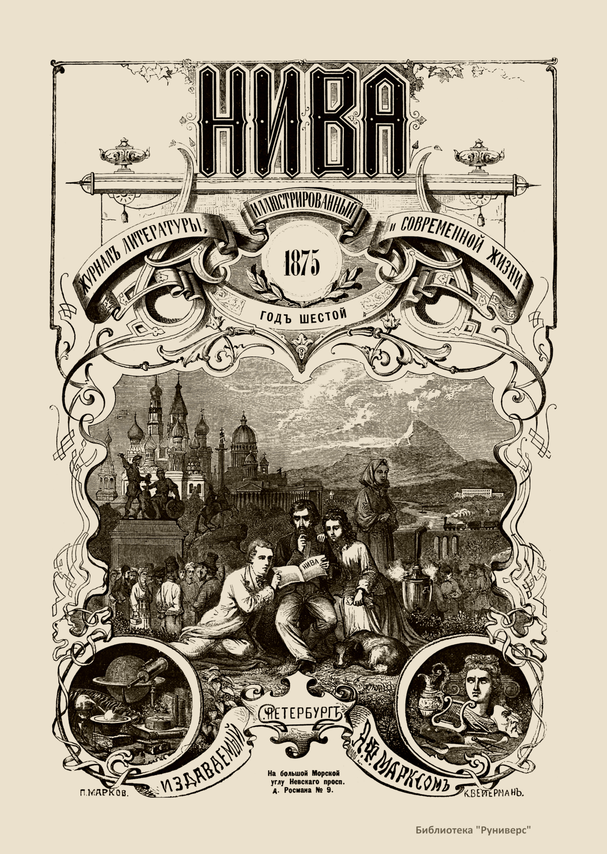 «Нива» — популярный еженедельный русский журнал с приложениями, издававшийся со второй половины XIX до начала XX века, носил подзаголовок «Журнал литературы, политики и современной жизни». Журнал был любимым детищем А. Ф. Маркса, возглавлявшего свое издательство вплоть до своей смерти в 1904 г. Позиционировалась «Нива» как иллюстрированный журнал для семейного чтения и был ориентирован, главным образом, на обывателя. В журнале публиковались литературные произведения, исторические, научно-популярные очерки, репродукции и гравюры картин современных художников. Материалы политического и общественного содержания также сопровождались многочисленными иллюстрациями. Среди известных литераторов, печатавшихся в журнале, были А. К. Толстой, Ф. И. Тютчев, Л. Н. Толстой, А. А. Фет, А. П. Чехов, Максим Горький, Корней Чуковский, Анна Ахматова, Иван Бунин и многие другие. Благодаря «Ниве» сочинения многих современных авторов добрались до самых отдаленных областей России.