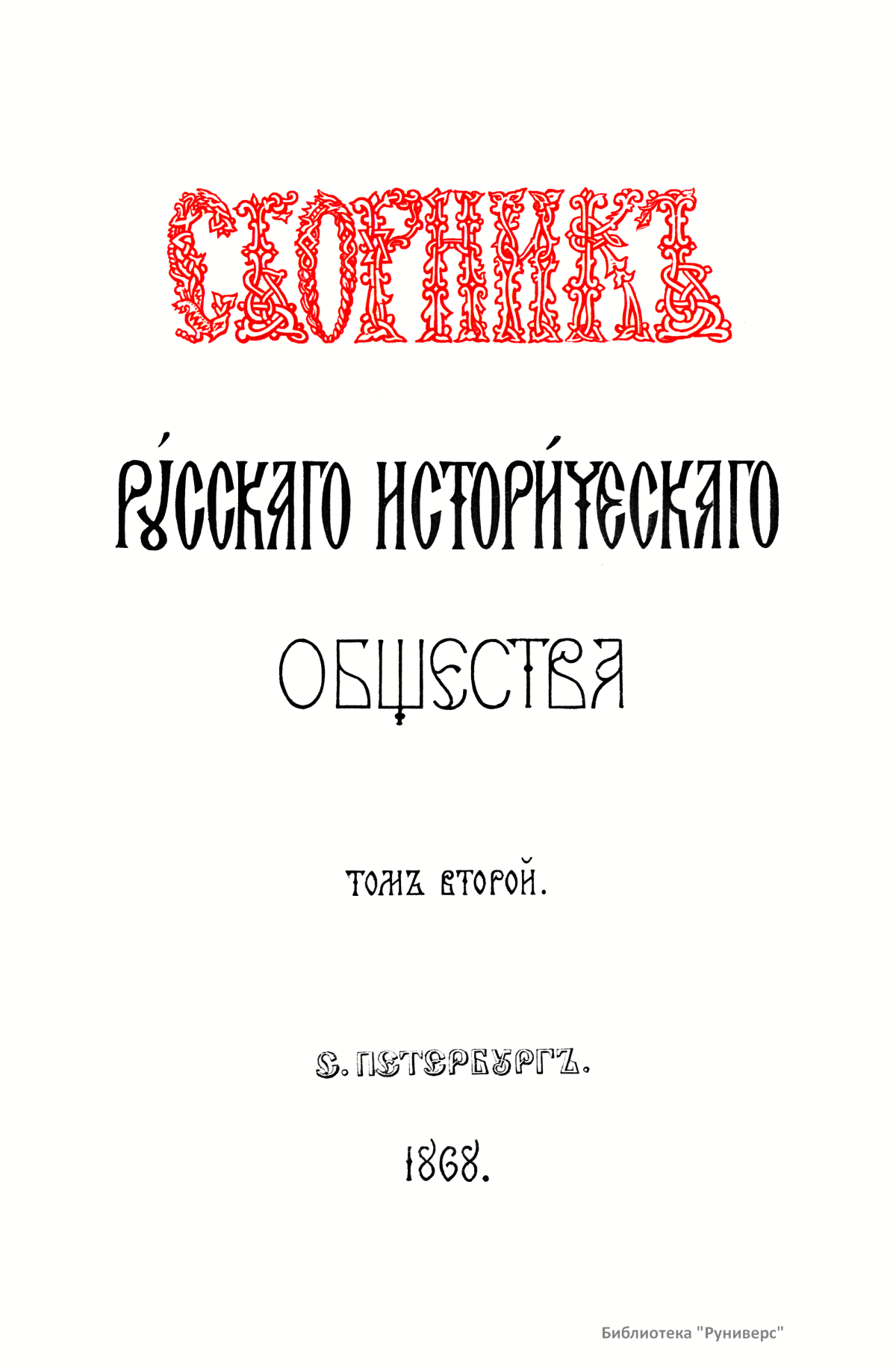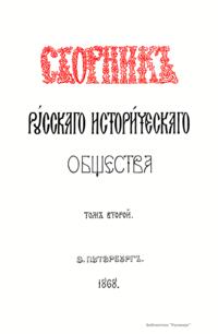 Сборникъ Русскаго историческаго общества. Томъ второй
