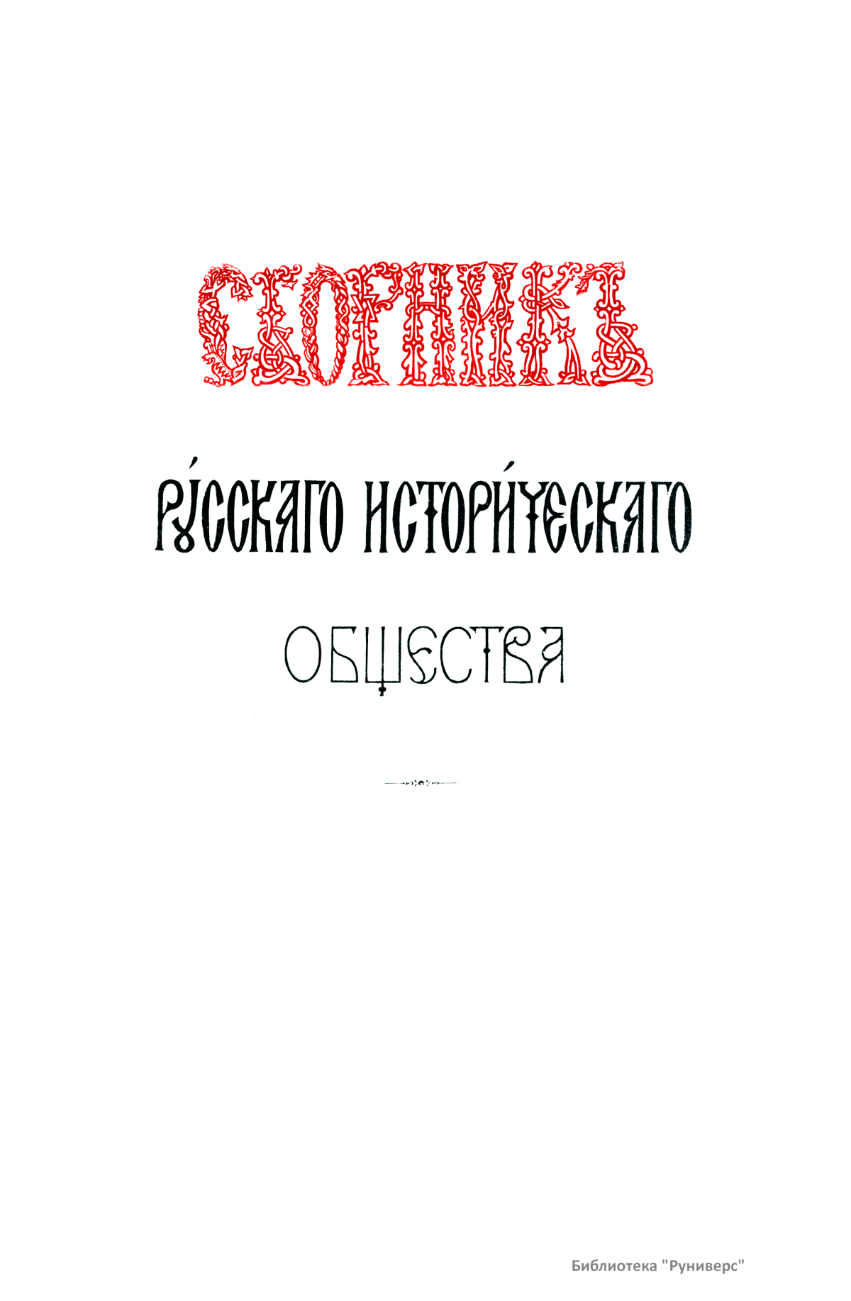 Сборники Русского исторического общества (РИО) – крупнейшая серийная публикация источников по истории России XVIII–XIX веков. За пятьдесят лет существования Общества (1866–1916) было выпущено 148 томов Сборника. Тематика опубликованных в Сборнике материалов обширна и включает в себя документы, относящиеся как к внутренней, так и внешней политике государства. Среди них можно выделить шесть крупных серий: «Материалы по истории Екатерининской комиссии для сочинения проекта нового Уложения 1767 г.», «Бумаги Екатерины II», «Материалы для истории высших государственных учреждений России в XVIII в.», «Материалы для политической и бытовой истории в 1812 г.», «Дипломатическая переписка иностранных послов и посланников при русском дворе», «Памятники дипломатических отношений древней России с державами иностранными», включающие документы XV–XVII веков, перешедшие в РИО от Второго отделения императорской канцелярии. Помимо этих серий в Сборнике публиковались личные бумаги Петра I, Петра II, Екатерины I, Александра I, Николая I, Александра II, а также документы, связанные с деятельностью видных государственных сановников. В Сборнике выходили отчёты о годичных собраниях РИО. Во время подготовки издания Русского биографического словаря в томах 60 и 62 был помещён Азбучный указатель имён русских деятелей для словаря. Основная работа по подготовке издания Сборника лежала на ответственных секретарях РИО. Первым таким секретарём стал один из наиболее деятельных организаторов Общества А. А. Половцев. В разное время в работе Общества принимали участие крупные историки: С. М. Соловьёв, В. О. Ключевский, Н. И. Костомаров, Н. Ф. Дубровин, П. П. Пекарский, В. И. Сергеевич, Я. К. Грот, А. Н. Филиппов, И. Е. Забелин, А. Н. Пыпин, С. Ф. Платонов, В. С. Иконников, Н. Д. Чечулин, А. Н. Попов.