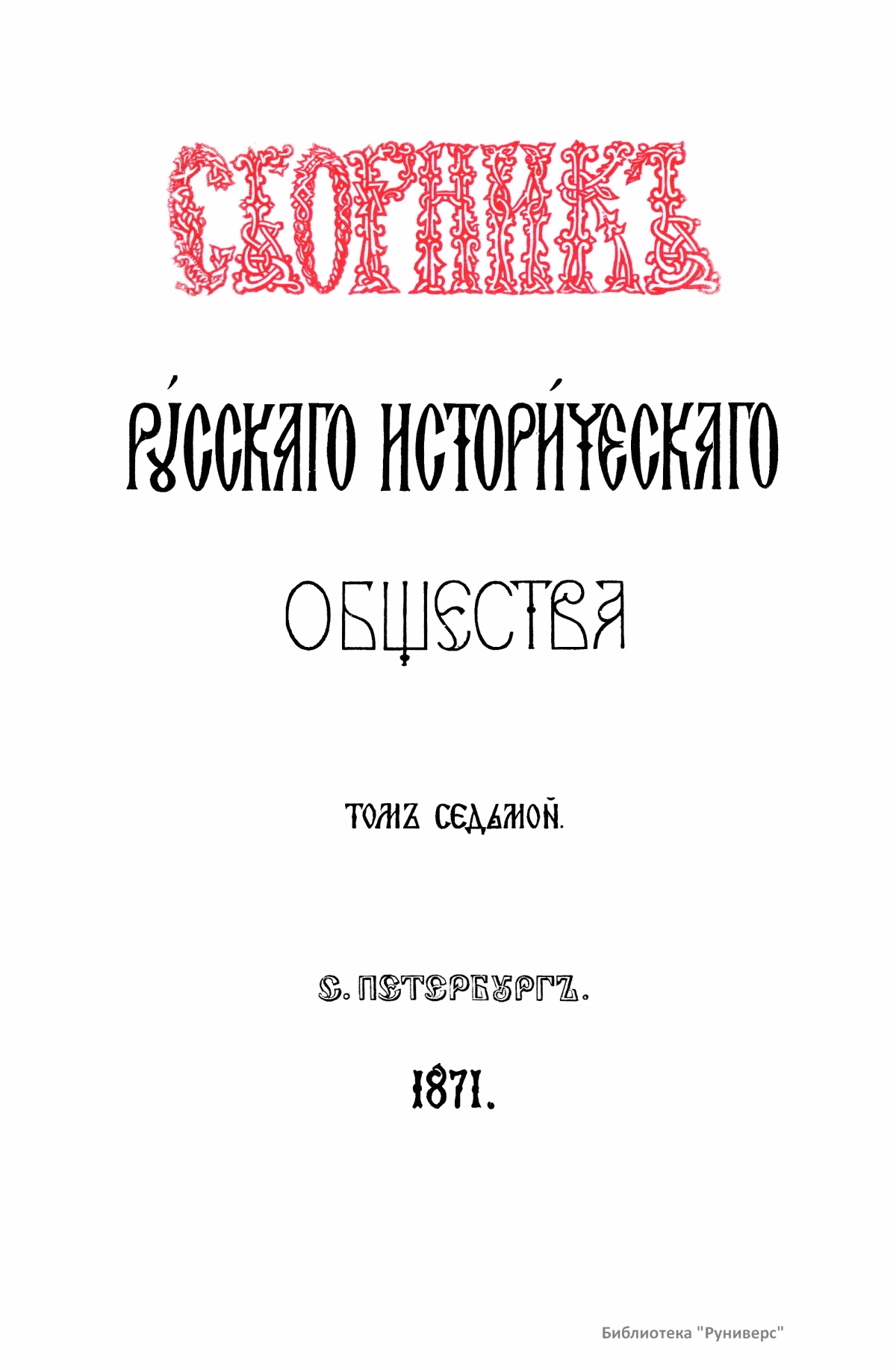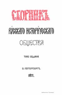 Сборникъ Русскаго историческаго общества. Томъ седьмой