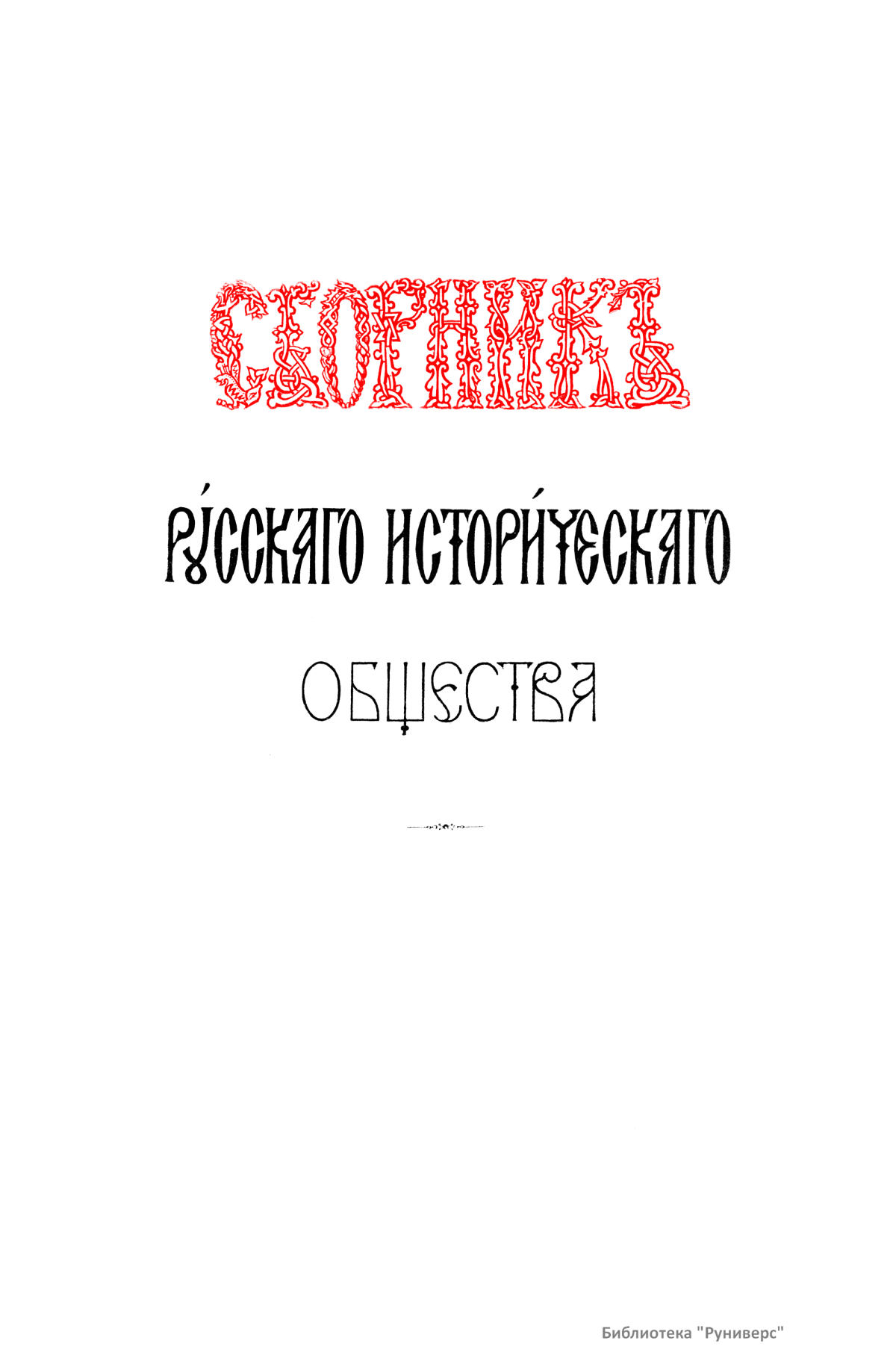 Сборники Русского исторического общества (РИО) – крупнейшая серийная публикация источников по истории России XVIII–XIX веков. За пятьдесят лет существования Общества (1866–1916) было выпущено 148 томов Сборника. Тематика опубликованных в Сборнике материалов обширна и включает в себя документы, относящиеся как к внутренней, так и внешней политике государства. Среди них можно выделить шесть крупных серий: «Материалы по истории Екатерининской комиссии для сочинения проекта нового Уложения 1767 г.», «Бумаги Екатерины II», «Материалы для истории высших государственных учреждений России в XVIII в.», «Материалы для политической и бытовой истории в 1812 г.», «Дипломатическая переписка иностранных послов и посланников при русском дворе», «Памятники дипломатических отношений древней России с державами иностранными», включающие документы XV–XVII веков, перешедшие в РИО от Второго отделения императорской канцелярии. Помимо этих серий в Сборнике публиковались личные бумаги Петра I, Петра II, Екатерины I, Александра I, Николая I, Александра II, а также документы, связанные с деятельностью видных государственных сановников. В Сборнике выходили отчёты о годичных собраниях РИО. Во время подготовки издания Русского биографического словаря в томах 60 и 62 был помещён Азбучный указатель имён русских деятелей для словаря. Основная работа по подготовке издания Сборника лежала на ответственных секретарях РИО. Первым таким секретарём стал один из наиболее деятельных организаторов Общества А. А. Половцев. В разное время в работе Общества принимали участие крупные историки: С. М. Соловьёв, В. О. Ключевский, Н. И. Костомаров, Н. Ф. Дубровин, П. П. Пекарский, В. И. Сергеевич, Я. К. Грот, А. Н. Филиппов, И. Е. Забелин, А. Н. Пыпин, С. Ф. Платонов, В. С. Иконников, Н. Д. Чечулин, А. Н. Попов.
