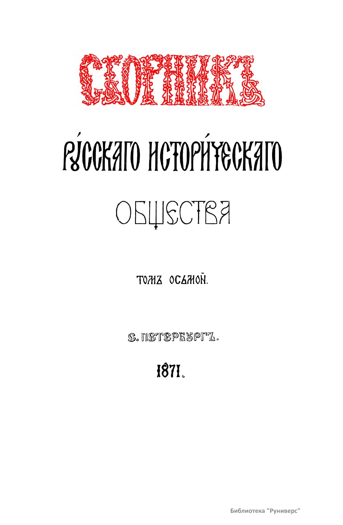 Сборникъ Русскаго историческаго общества. Томъ осьмой
