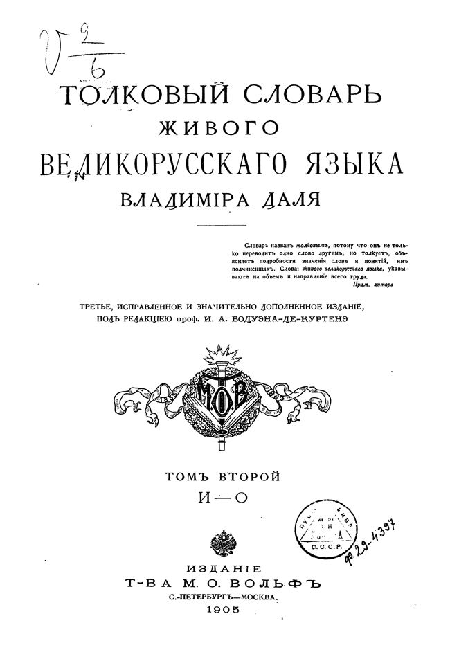 Толковый словарь живого великорусского языка. Том второй. И — О
