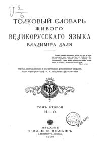 Толковый словарь живаго великорускаго языка Владимiра Даля. Томъ второй. И — О
