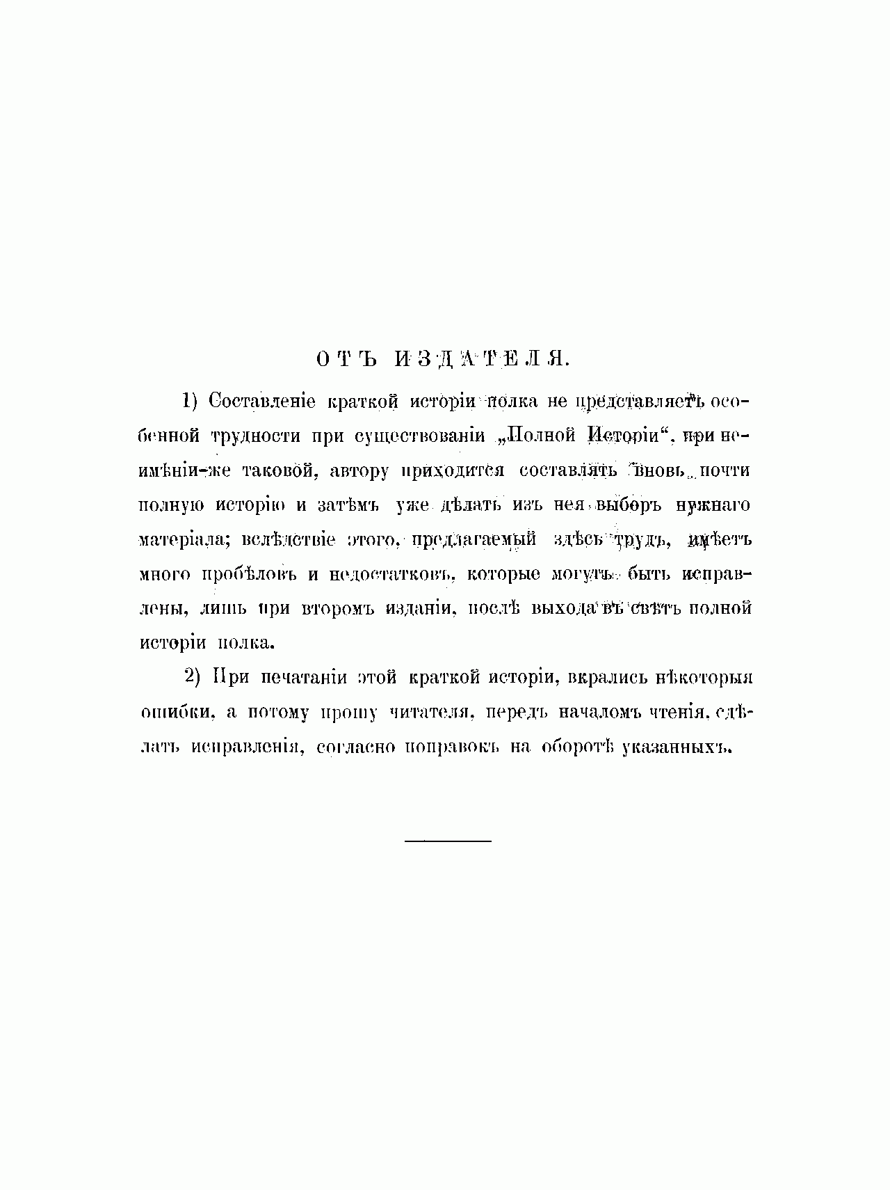 Данное издание представляет собой изложение общих сведений о боевом пути полка. В предисловии к своей краткой истории автор отмечает, что «предлагаемый здесь труд имеет много пробелов и недостатков, которые могут быть исправлены лишь при втором издании, после выхода в свет полной истории полка». Действительно, в книге помещены лишь краткие очерки о событиях военной истории России, в которых принимал участие полк.