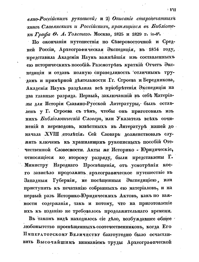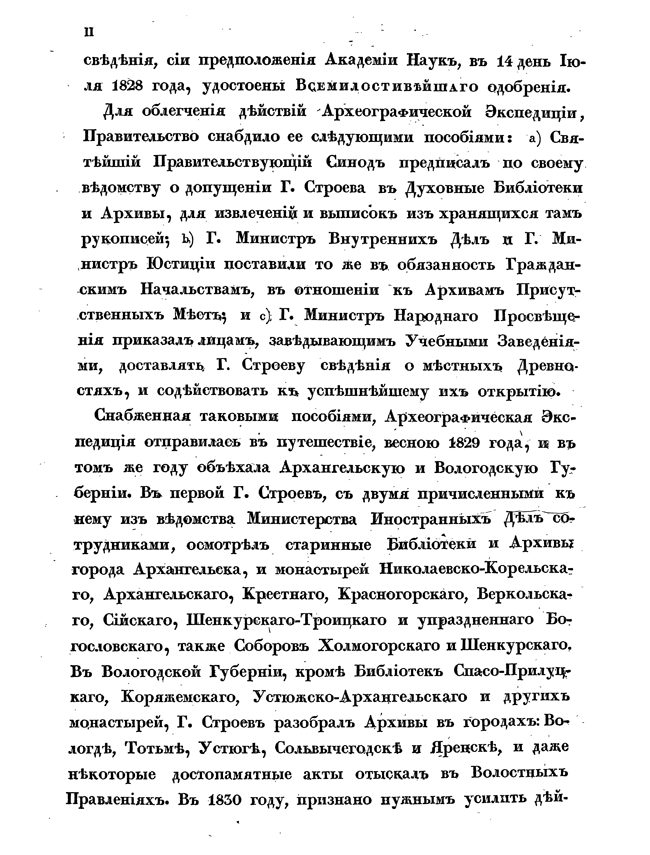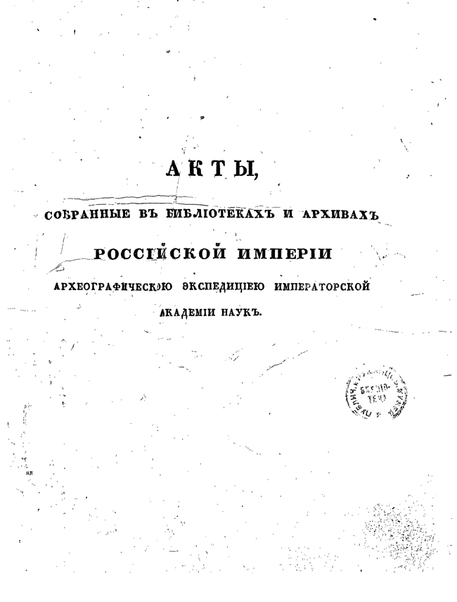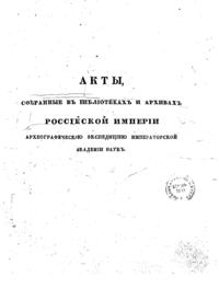Историко-юридические акты (древние грамоты, указы, наказные памяти, отписки, судные дела, розыски и проч.) конца XIII – XVIII в., собранные экспедицией Императорской академии наук 1829 – 1834 гг. под руководством археолога Г. Строева в архивах монастырей и городов Северовосточной и Средней России, дополнены некоторыми неизвестными ранее документами из Санкт-Петербургских библиотек и Московского главного архива Министерства иностранных дел. Всего опубликовано 1296 актов.
