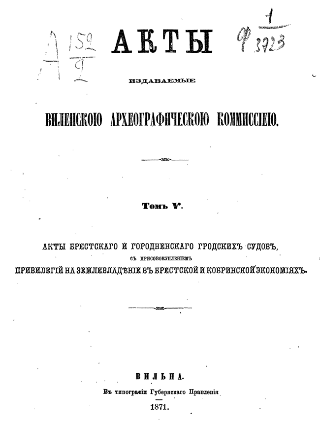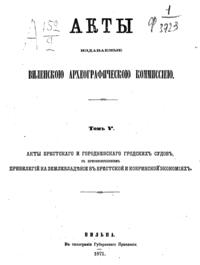 Обилие актов и документов Виленского центрального архива (19244 актовых книг) и желание исследовать прошлое Литвы, которая и в старину принадлежала России, вызвали после 1863 года учреждение особой комиссии для разбора в городе Вильне древних актов.