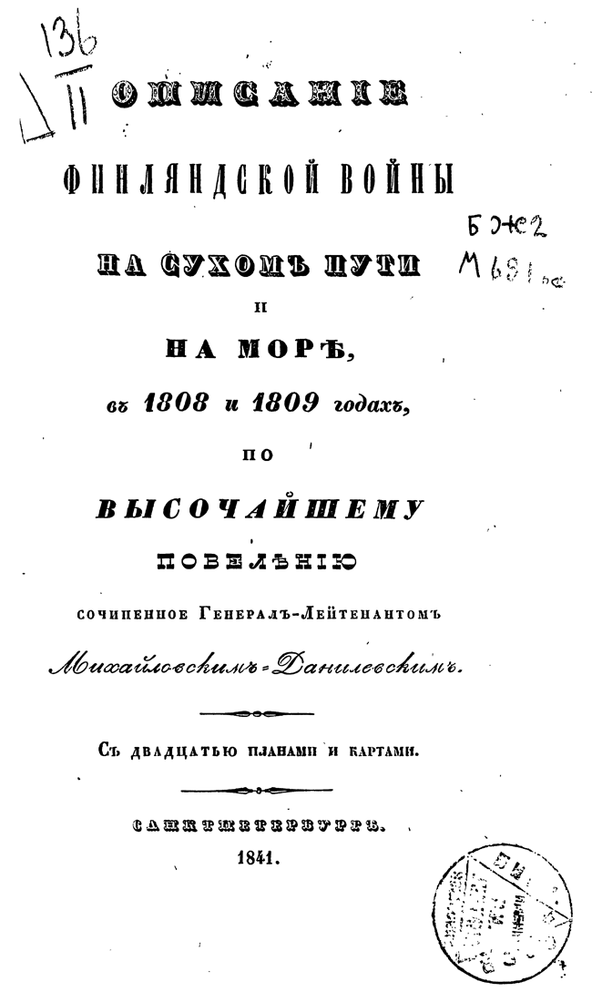 Описание Финляндской войны на сухом пути и на море в 1808 и 1809 годах