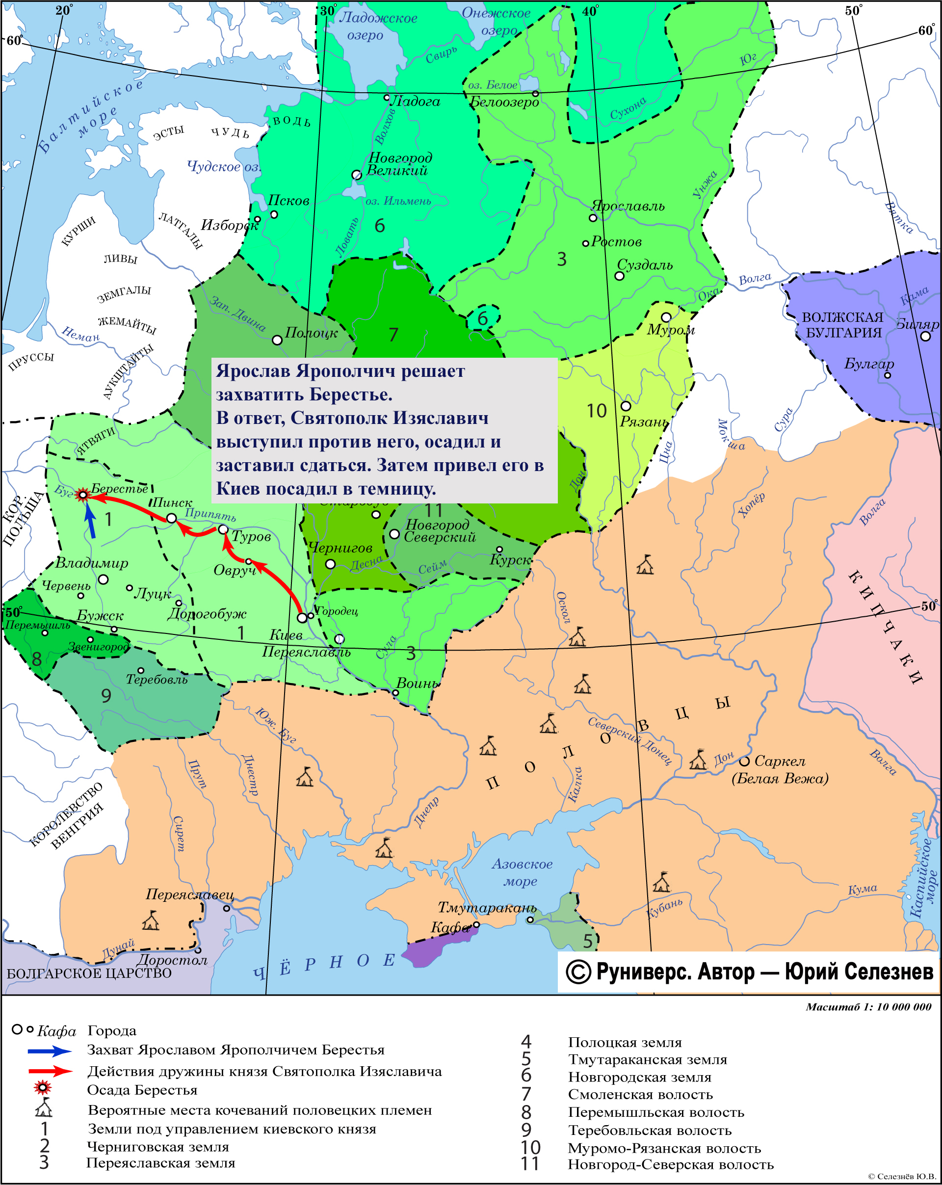 Ярослав Ярополчич решает захватить Берестье. В ответ, Святополк Изяславич выступил против него, осадил и заставил сдаться. Затем привел его в Киев посадил в темницу.
