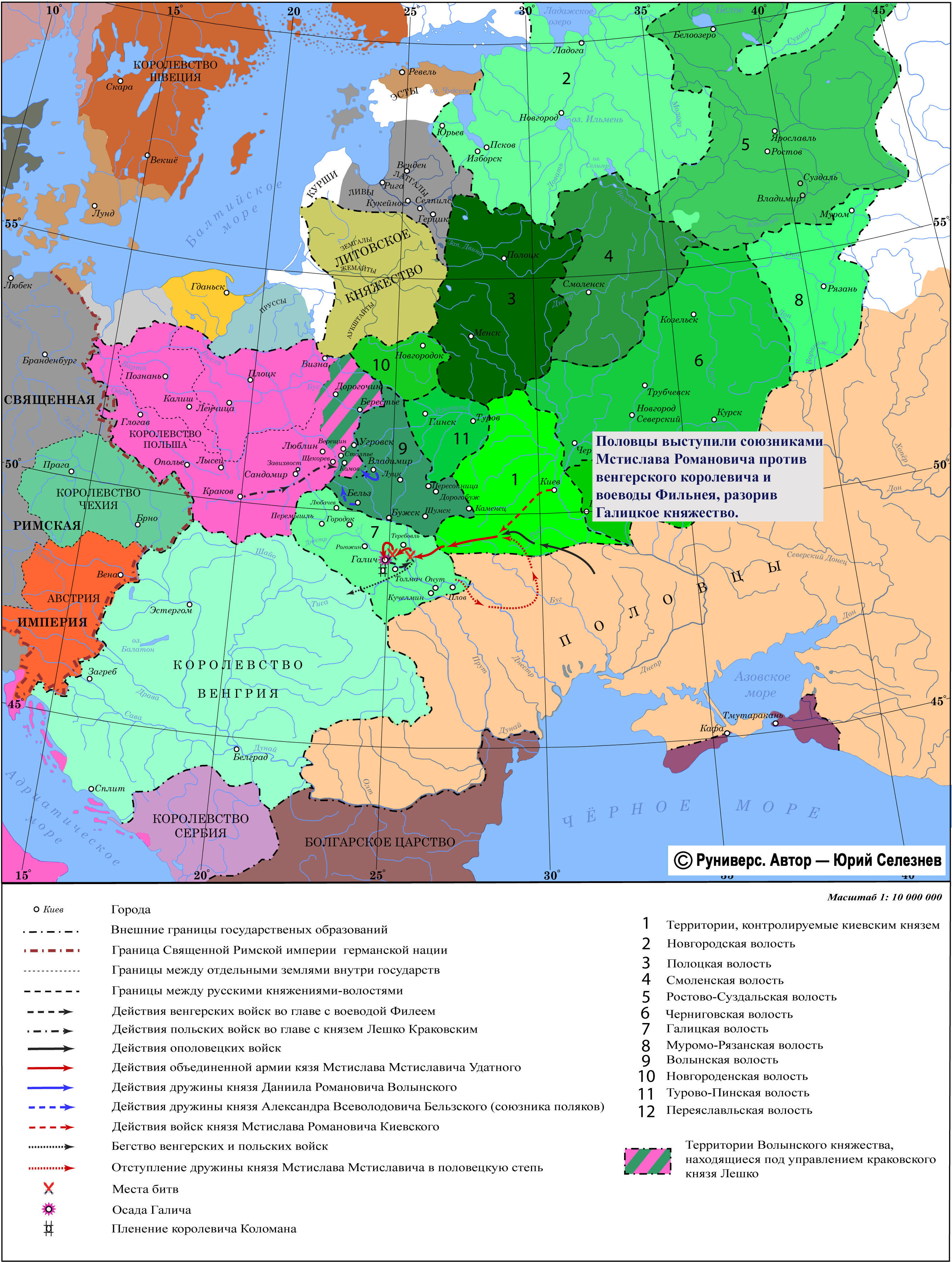Половцы выступили союзниками Мстислава Романовича против венгерского королевича и воеводы Фильнея, разорив Галицкое княжество.