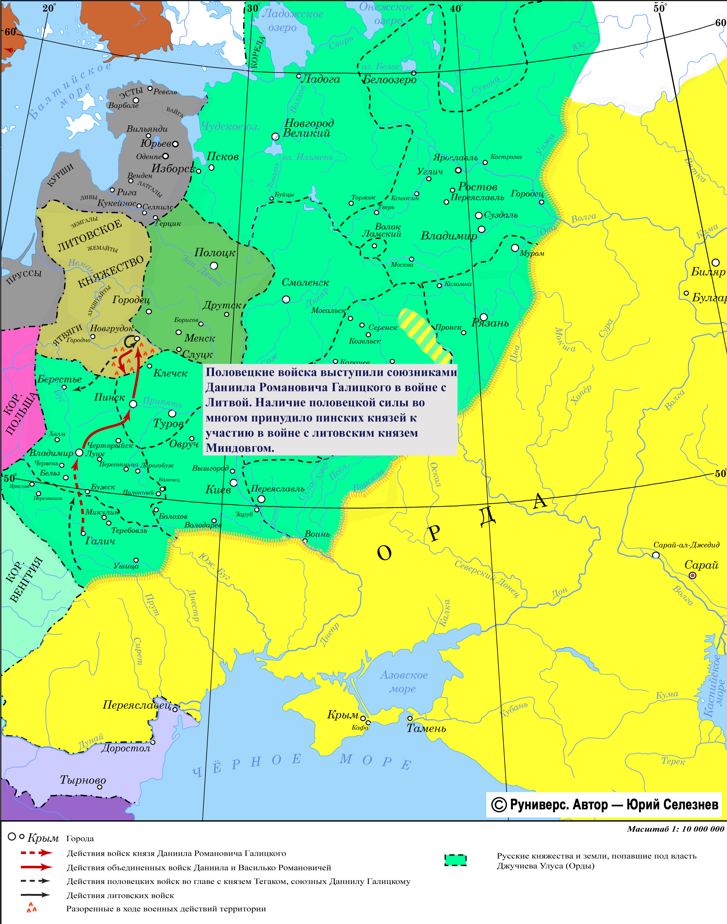 Половецкие войска выступили союзниками Даниила Романовича Галицкого в войне с Литвой. Наличие половецкой силы во многом принудило пинских князей к участию в войне с литовским князем Миндовгом.