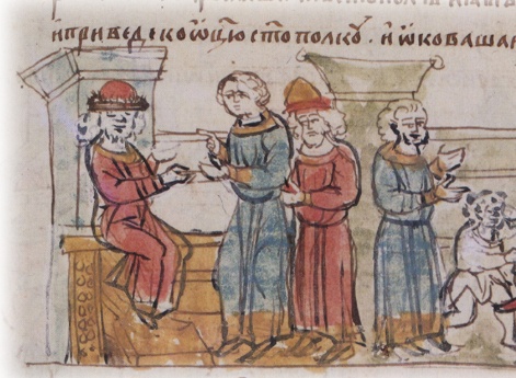 Святополк (в крещении — Михаил) Изяславич, сын великого князя И. Ярославича и княгини Олисавы (Елизаветы (?); умерла в 1108 г.). По порядку престолонаследия — двенадцатый великий князь. Родился княжич в 1050 г., а по некоторым нелетописным данным, — 8 ноября; назван в честь архангела Михаила. В 1068 г. отец сажает его на княжение в Полоцк вместо умершего в мае брата Мстислава. В 1071 г., однако, изгнан из Полоцка князем Всеславом Брячиславичем. По всей вероятности, Святополк сопровождает отца во время его вынужденной поездки в Польшу и Германию в 1073–1077 гг. Зимой 1077–78 гг. после возвращения отца в Киев он вместе со своим двоюродным братом Владимиром Всеволодовичем Мономахом совершает поход в Полоцкую землю против князя Всеслава Брячиславича: князья сжигают Полоцк и разоряют еще несколько городов. В 1078 г. после гибели (30 мая) другого двоюродного брата, новгородского князя Глеба Святославича, Святополк занимает новгородский престол. Его новгородское княжение продолжается до 1088 г., когда князь по собственной воле переходит в Туров; в Великом Новгороде садится Давыд Святославич. В 1093 г., после смерти (13 апреля) своего дяди Всеволода Ярославича, Святополк, как старший в роду, получает киевский стол, от которого добровольно отказывается Владимир Мономах. Получив приглашение от Мономаха, Святополк приезжает из Турова в Киев 24 апреля, «и изидоша противу ему кияне с поклоном, и прияша и (его. — Д.В. Донской) с радостью; [и] сѣде на столѣ отца своего и строя своего». Тогда же в Киев являются послы от половцев, которые, узнав о смерти Всеволода, предлагают Святополку мир на прежних условиях, существовавших при Всеволоде. Святополк, не посоветовавшись со своей дружиной, но прислушавшись к совету тех, кто пришел с ним из Турова, приказывает схватить послов и заточить их. В ответ половцы начинают военные действия и осаждают Торческ. Святополк отпускает послов и соглашается на мир, но теперь половцы уже не хотят мира. По совету умудренных опытом («смысленных») мужей, Святополк обращается за помощью к Владимиру Мономаху. Тот является в Киев вместе со своим братом Ростиславом. Князья совещаются в Выдубецком Михайловском монастыре (на берегу Днепра в 1 версте ниже Киево-Печерского монастыря), причем с большим трудом и лишь под влиянием «смысленных мужей», приходят к единству. Владимир предлагает заключить мир с половцами, но Святополк настаивает на войне. Русское войско подступает к Треполю и останавливаются на берегу р. Стугны (правый приток Днепра). Здесь споры между князьями продолжаются. Вопреки совету Владимира, Святополк настаивает на переправе через р. Стугну, в то время полноводную. 26 мая у Треполя происходит сражение, которое заканчивается полным поражением русских. Дружина Святополка первой не выдерживает натиска половцев и бежит с поля боя. Вынужден бежать и князь Святополк, несмотря на то, что лично он, по утверждению летописца, проявил стойкость («стояше крепко»). Во время бегства в водах Стугны погибает князь Ростислав Всеволодович. Святополк же затворяется в Треполе, где пребывает до вечера, а ночью возвращается в Киев. Осажденные половцами жители Торческа обращаются к Святополку с мольбой о помощи. Святополк пытается передать им провизию, но тщетно. Тем не менее, осада Торческа продолжается 9 недель; часть половцев задерживается у города, а часть уст