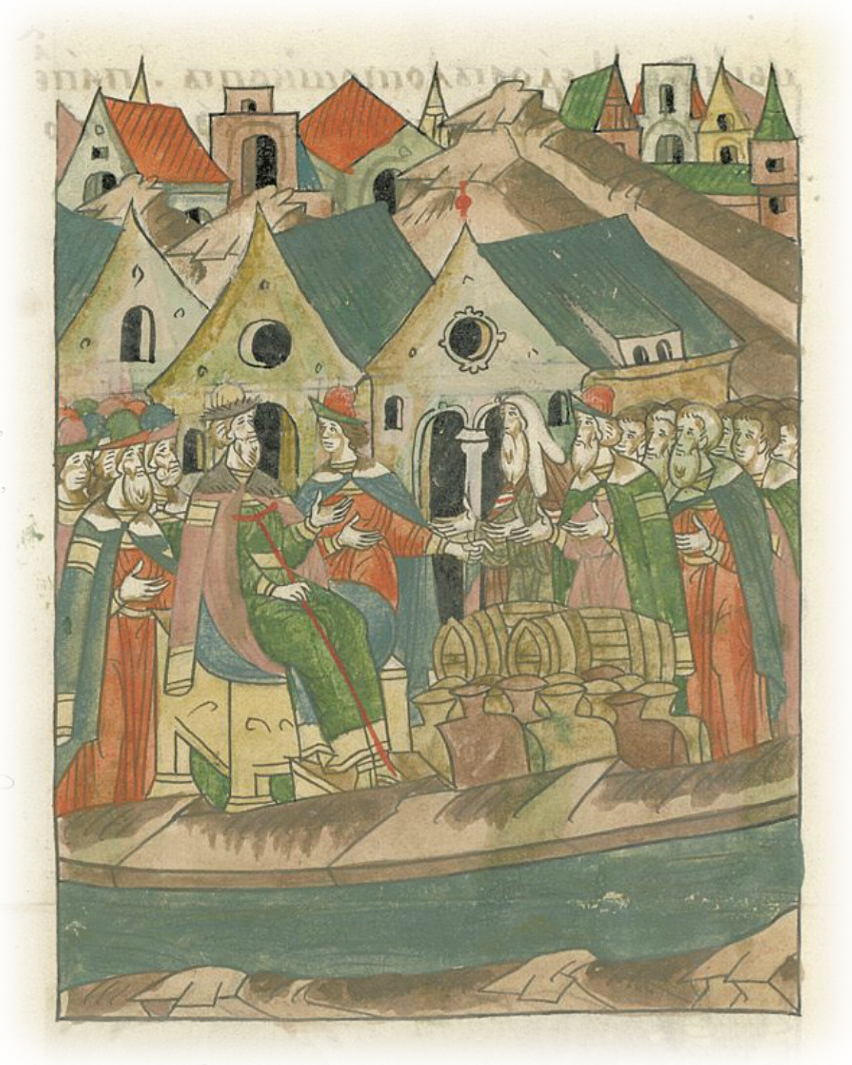Но данные начала XV в. позволяют говорить, что «казначеем» могло именоваться и высокопоставленное лицо, ведавшее финансами целого государства. Имеется летописное известие 1405 г. о приезде от хана Шадибека посла — «казначея царева»2. А в послании правителя Орды Едигея Василию I (конец 1408 г.) «казначеем» назван боярин великого князя Иван Федорович Кошкин3.
