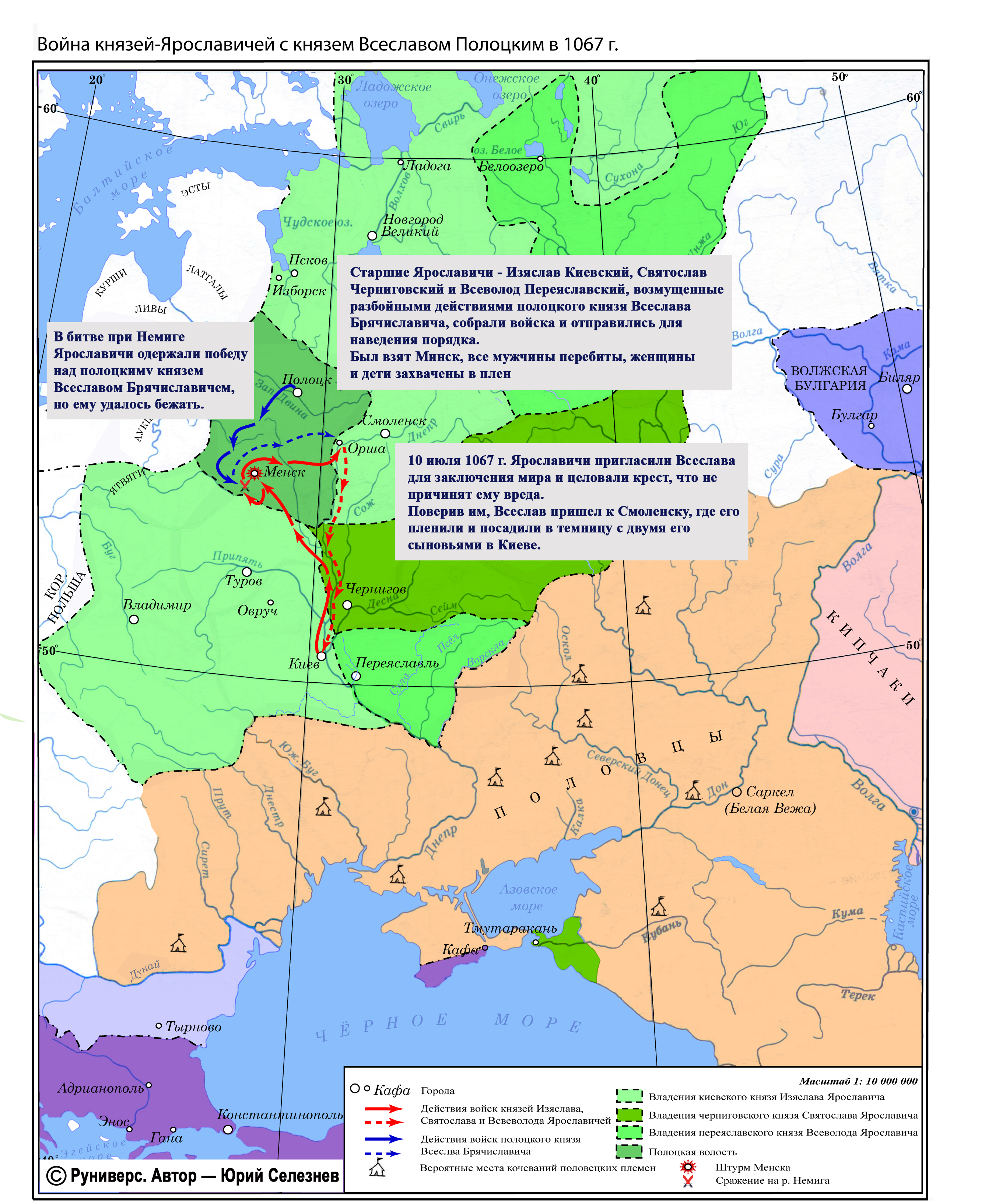 Святослав Ярославич: Чернигов – Минск. Всеволод Ярославич: Переяславль – Минск.