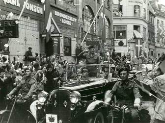 Жители Копенгагена приветствуют командующего британской армией фельдмаршала Бернарда Лоу Монтгомери. 12 мая 1945 г.